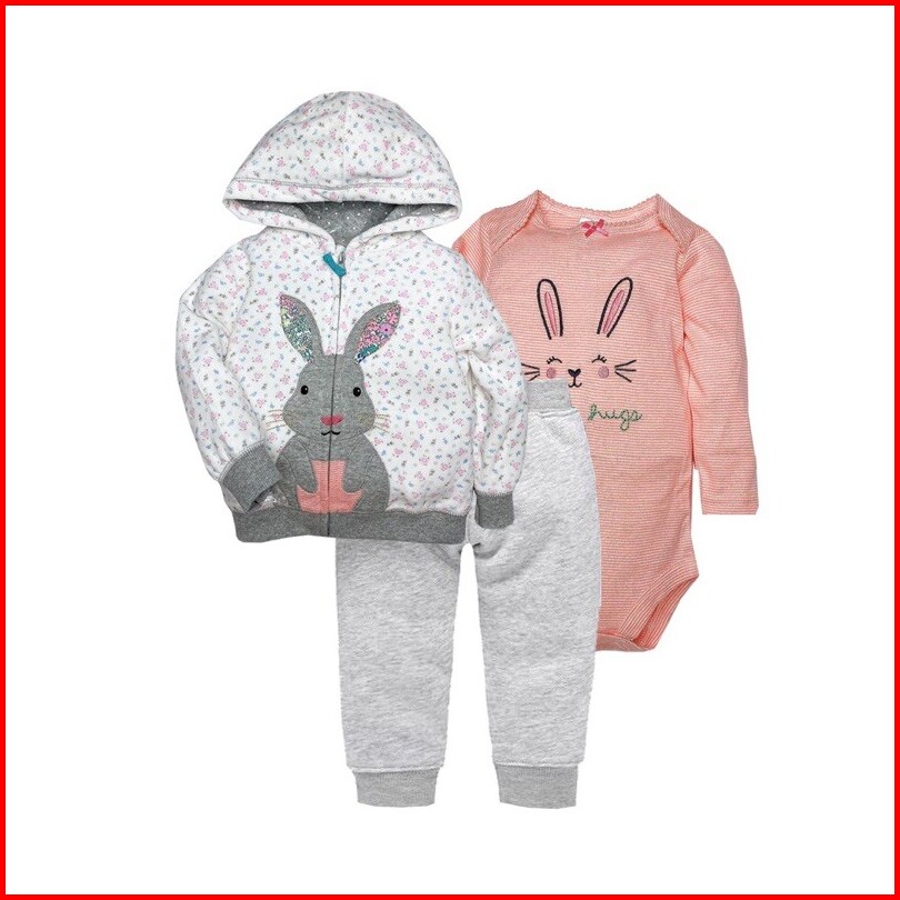 Littledino - Jacket Set Bayi 3pcs Motif Rabbit