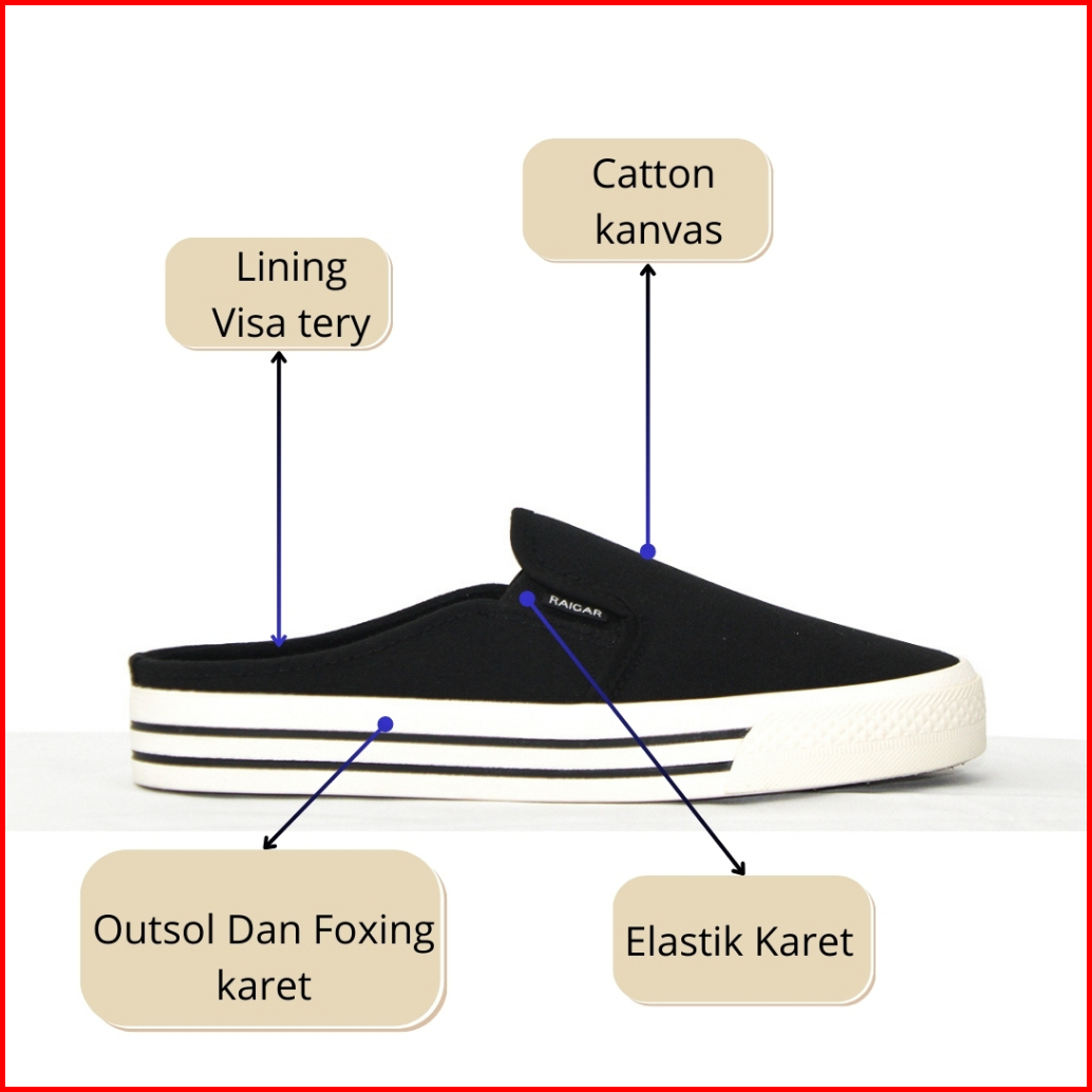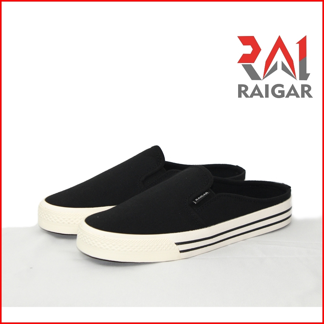 Sepatu Slop Bustong Hitam Pria Original Raigar Canvas Casual Tanpa Tali 36-44