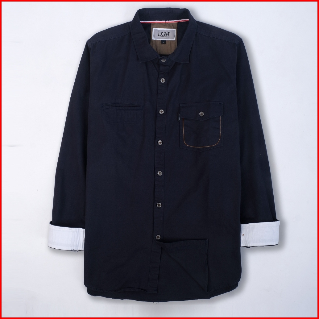 Dgm Workshirt Kemeja Kerja Katun Twill 30s Premium Lengan Panjang Double Pocket Kemeja Pria Navy Alaska 2471