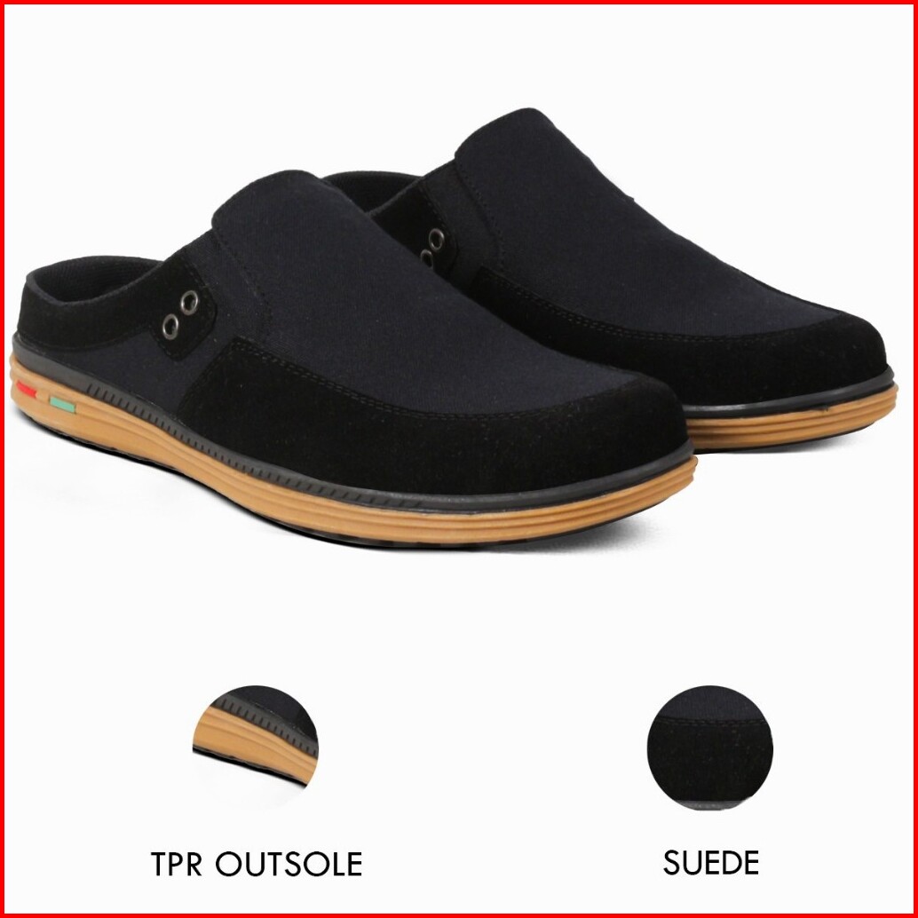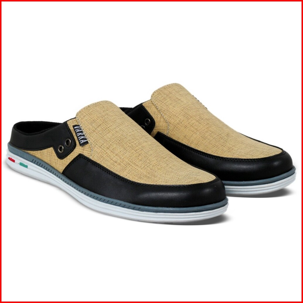 Sepatu Sandal Pria V 4964 Brand Varka Sandal Bustong Selop Pria Modis Berkualitas -hitam