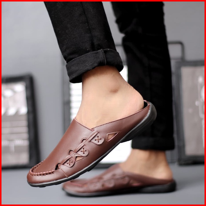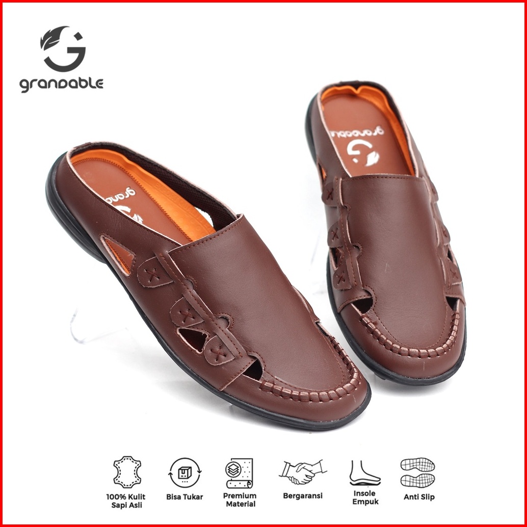 Grandable - Sepatu Sandal Bustong Slop Kulit Asli Pria Santai - Frangky
