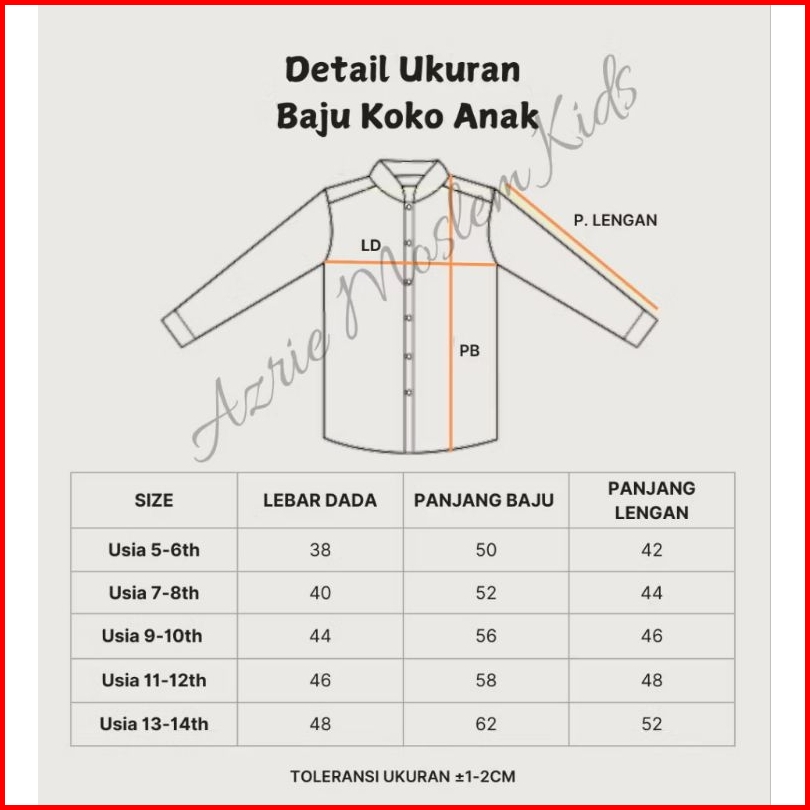 Baju Kemeja Koko Anak Lengan Panjang Umur 5 Sampai 14 Tahun
