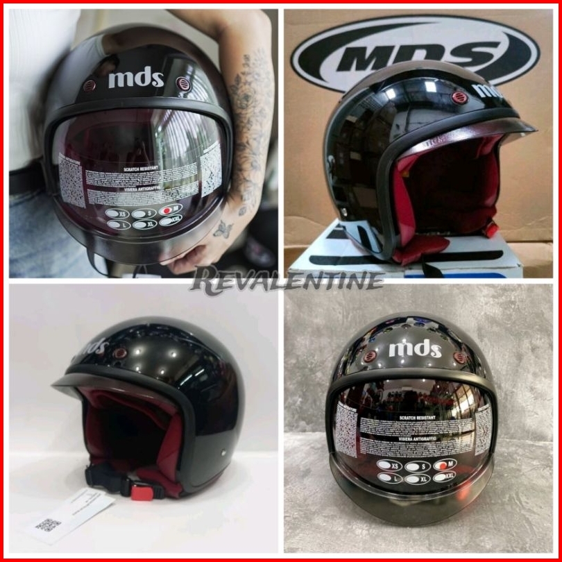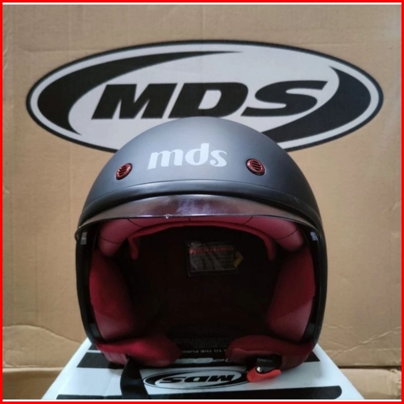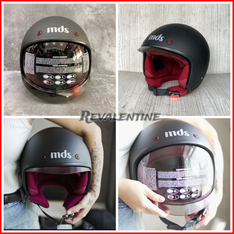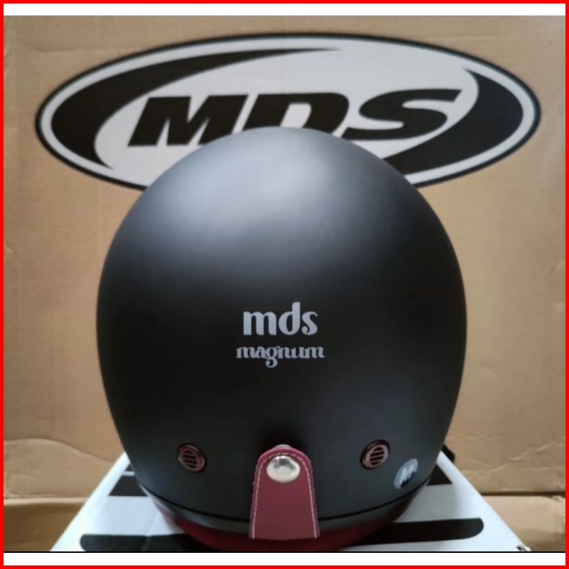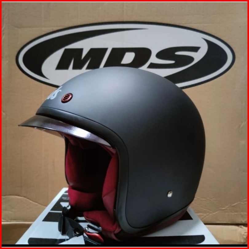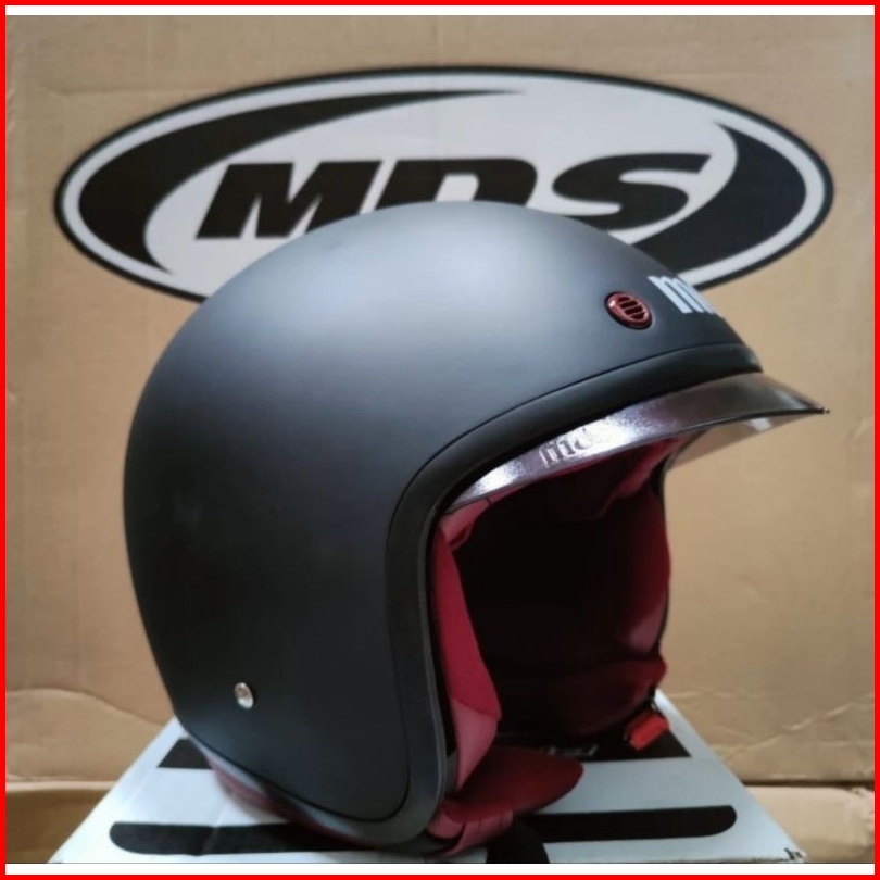 Mds Magnum Black Doff Solid Original Helm Half Face Bogo Retro Hitam Glossy Dengan Visor Sni Ori