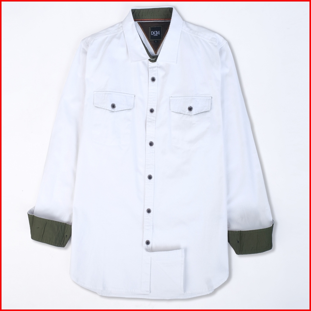 Dgm Workshirt Kemeja Kerja Katun Twill 30s Premium Lengan Panjang Double Pocket Kemeja Pria White Nathan 2549