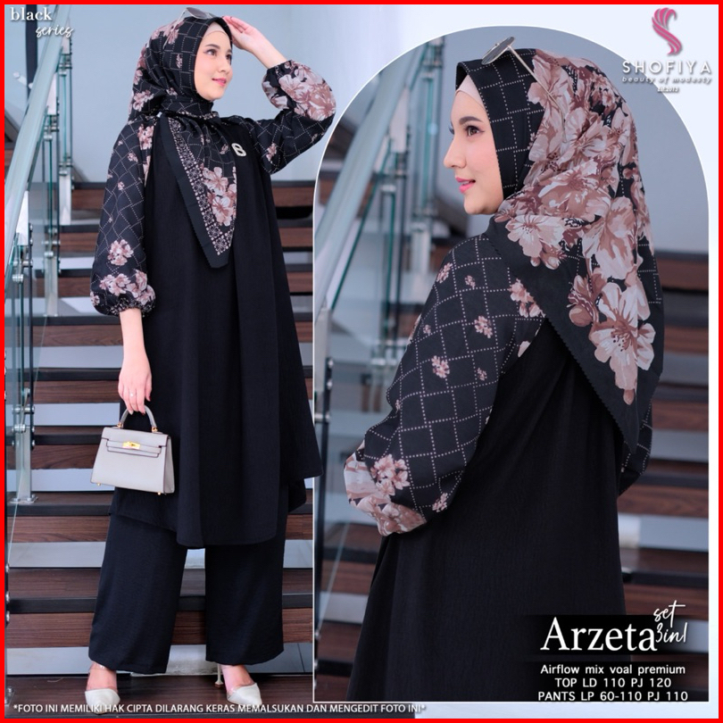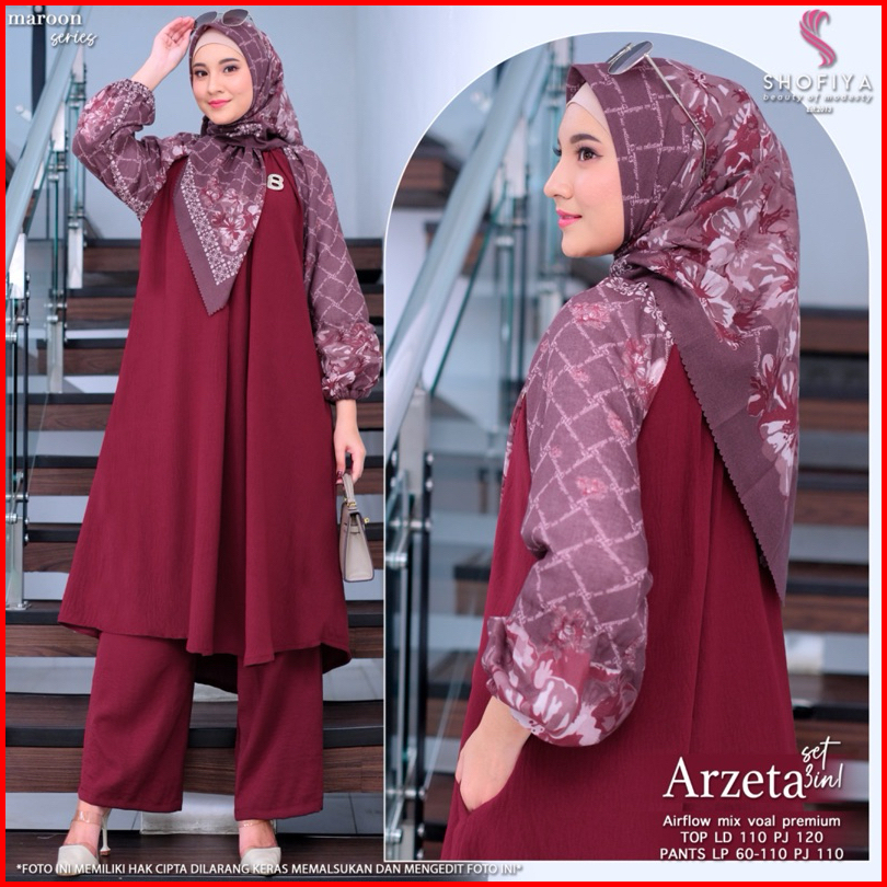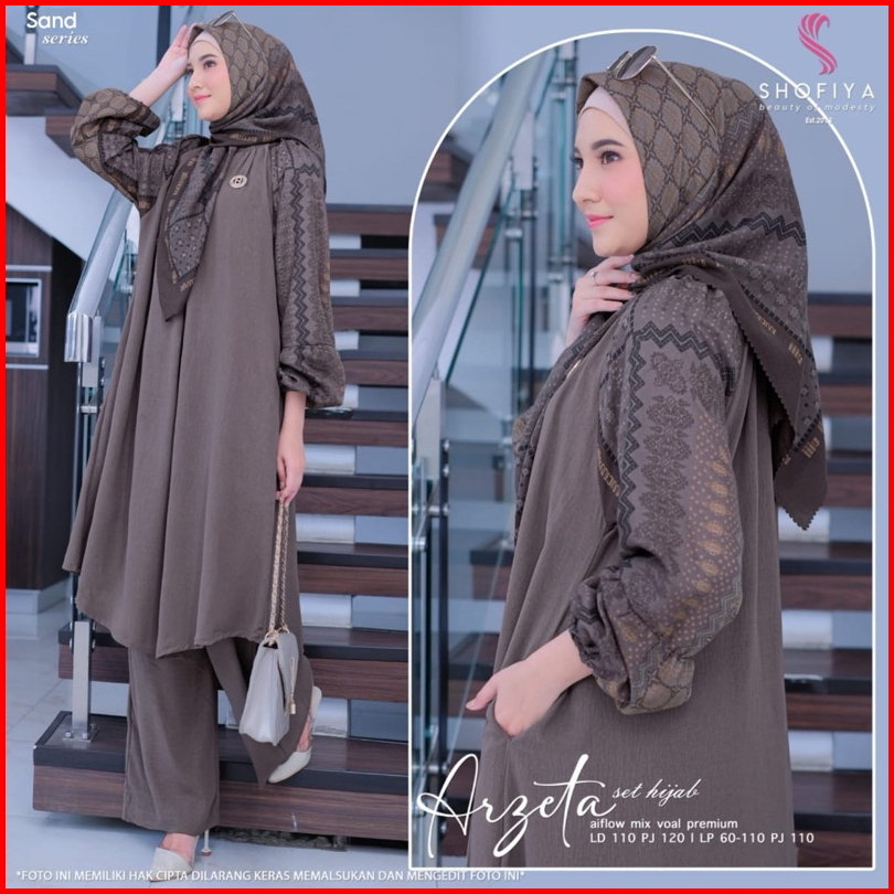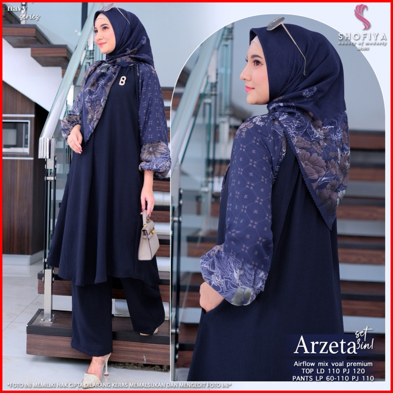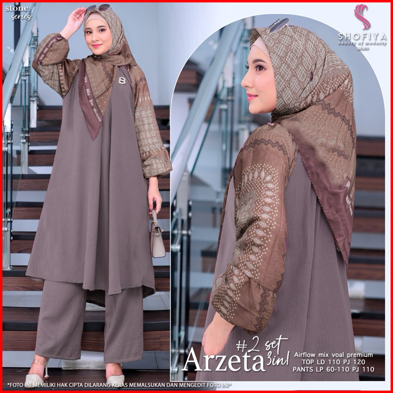 Vican Terbaru Arzeta Set Hijab 3 In 1 Setelan Celana Tunik Midi Dress Gamis Rayon Wanita Fashion Busana Muslim Modern Or