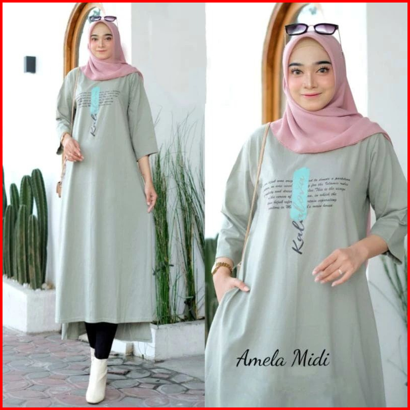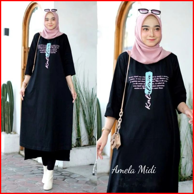 Gamis Terbaru Amela Midi Dress Bahan Combed Aplikasi Sablon Ukuran S M L Xl Xxl Dress Remaja Tanggung Busana Muslim Wani