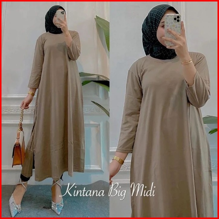 Gamis Terbaru Kayla Midi Dress Midi Dress Combed Jumbo Bahan Katun Combed 24s Ukuran S M L Xl Xxl Busana Muslim Jumbo