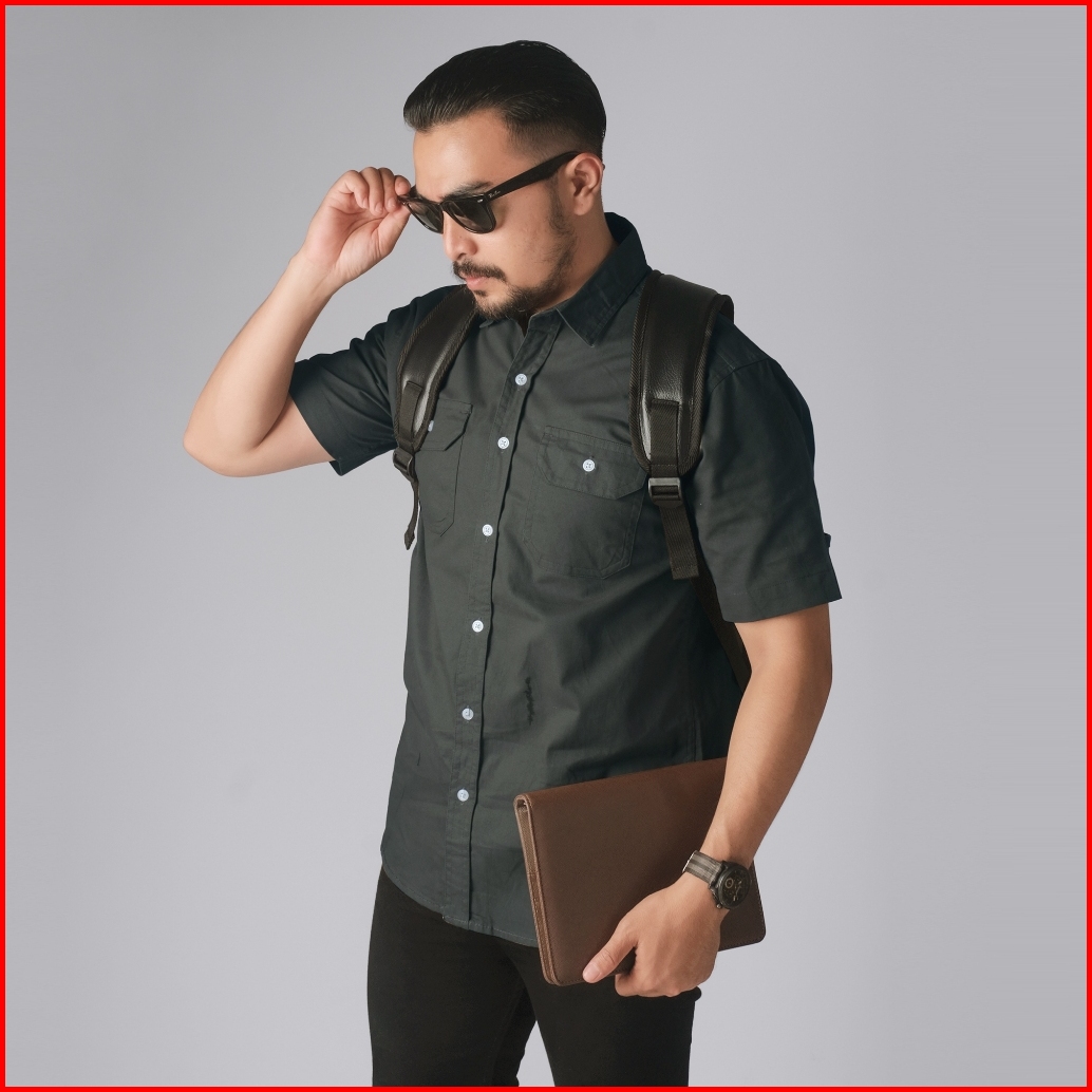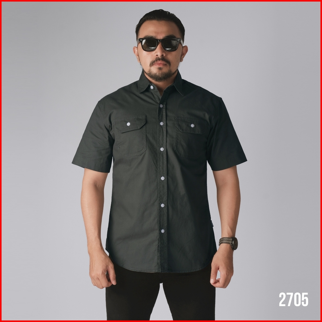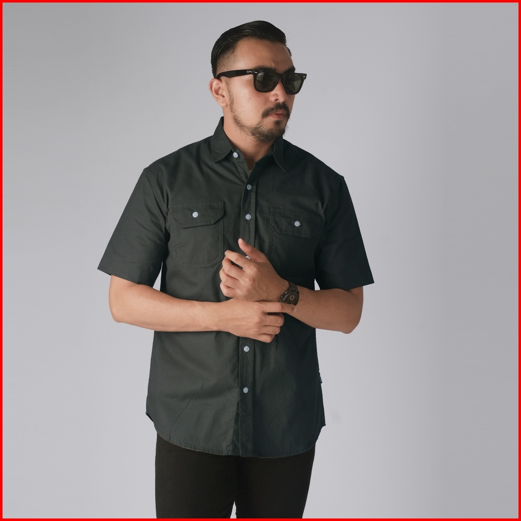 Dgm Kemeja Pria Polos Double Pocket Lengan Pendek Katun Twill 30s Premium Workshirt Kemeja Kerja Dark Green 2705