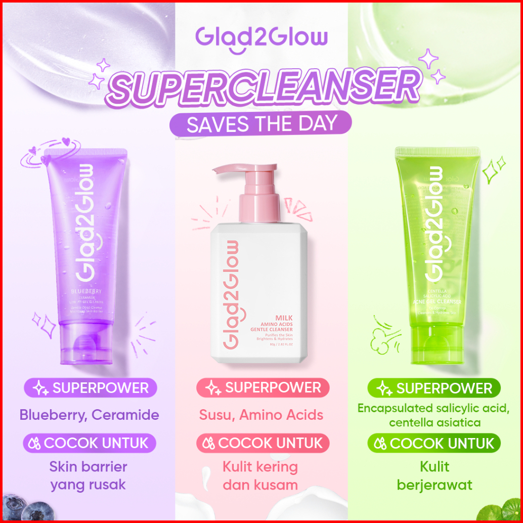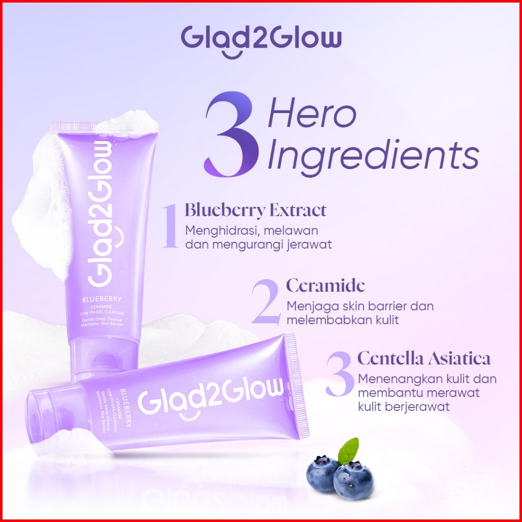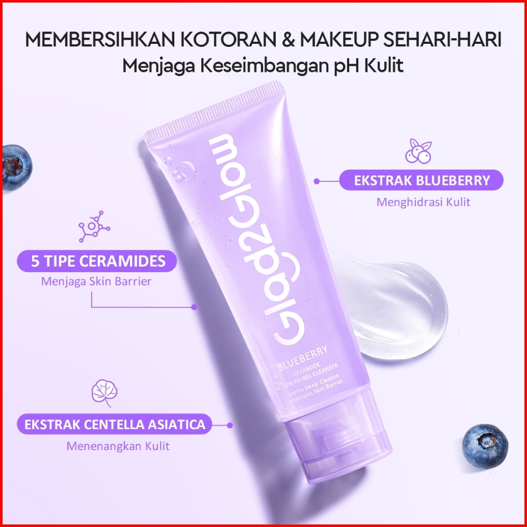 Face Wash Glad2glow Blueberry Ceramide Low Ph Gel Cleanser 70ml G2g Facial Wash Sabun Cuci Muka Pembersih Wajah Face Cle