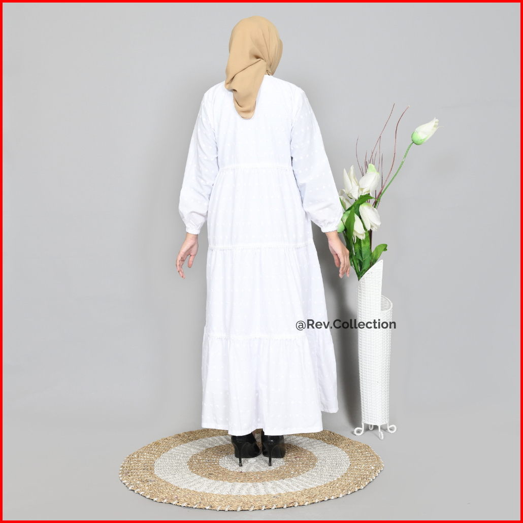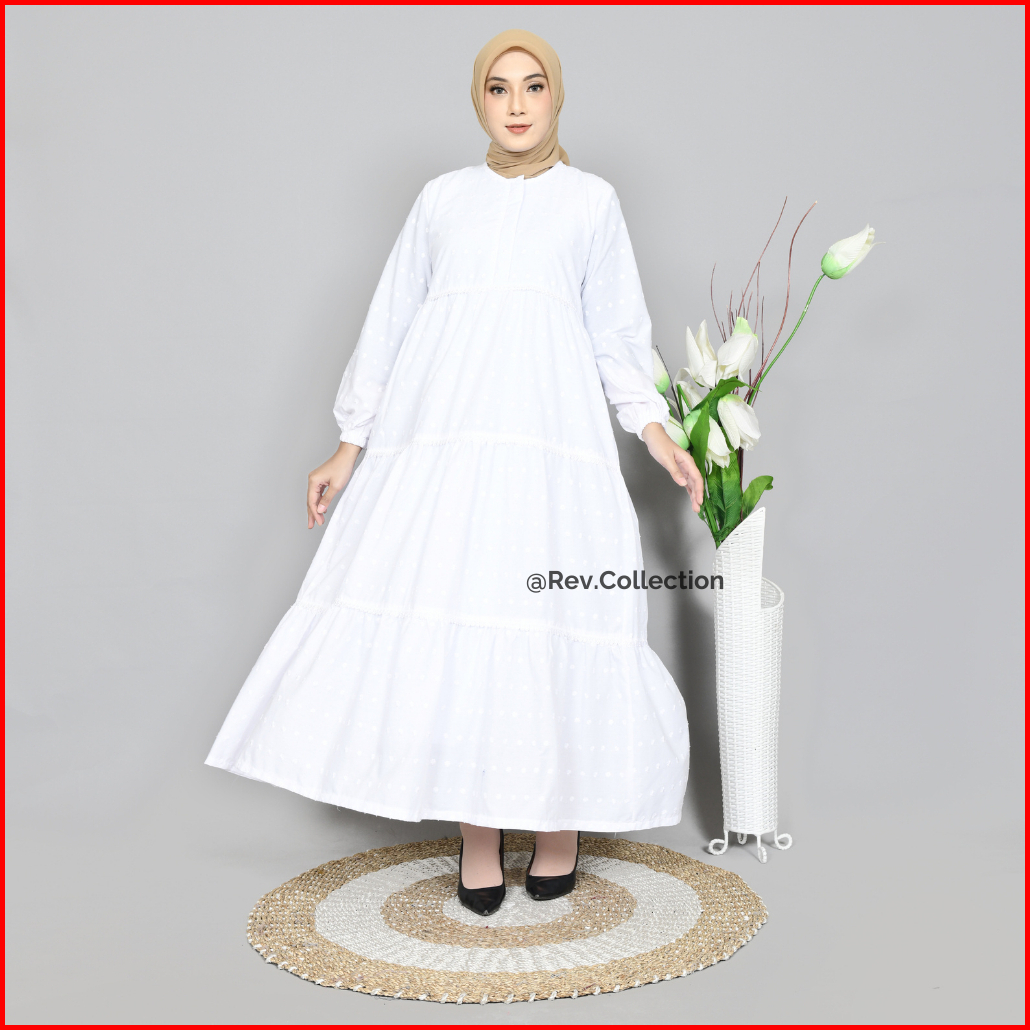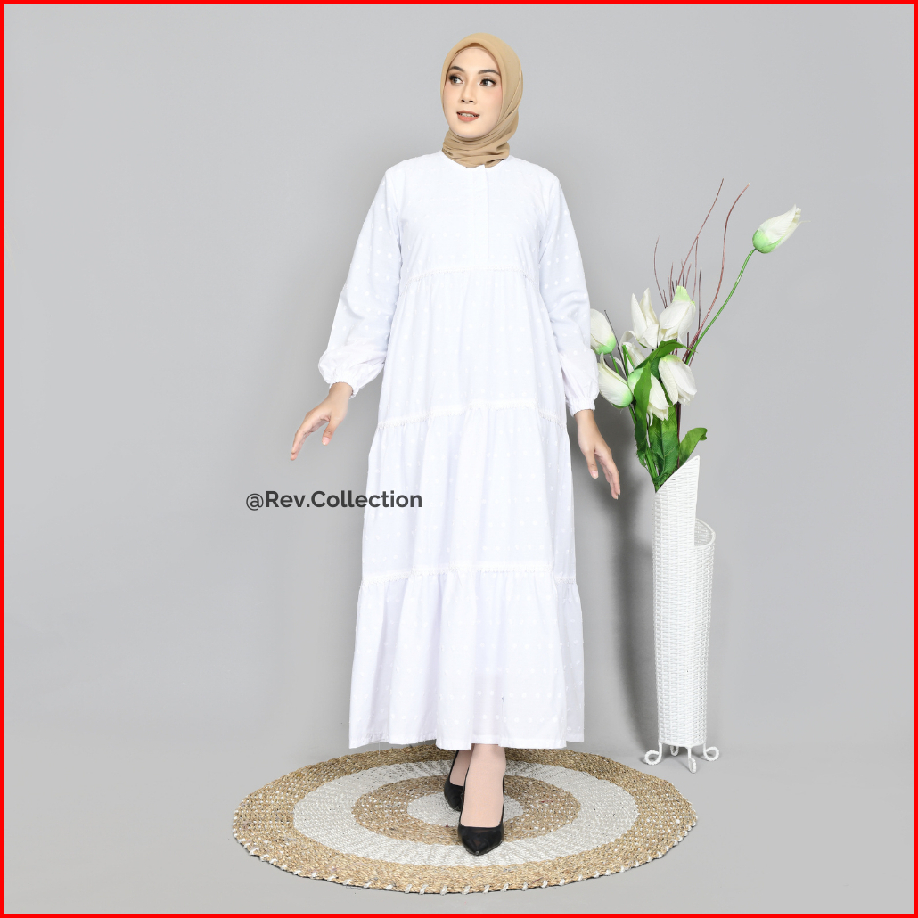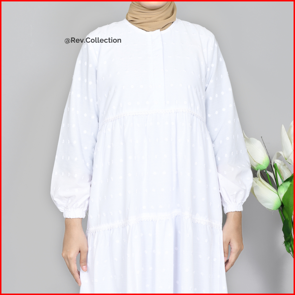 Rev Gamis Rempel Motif Bunga Busana Gamis Putih Wanita Muslimah