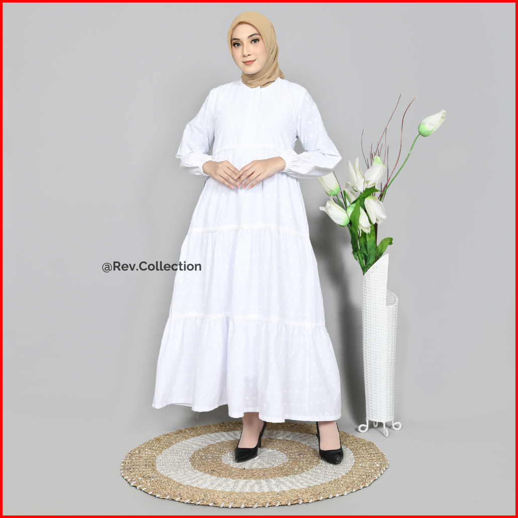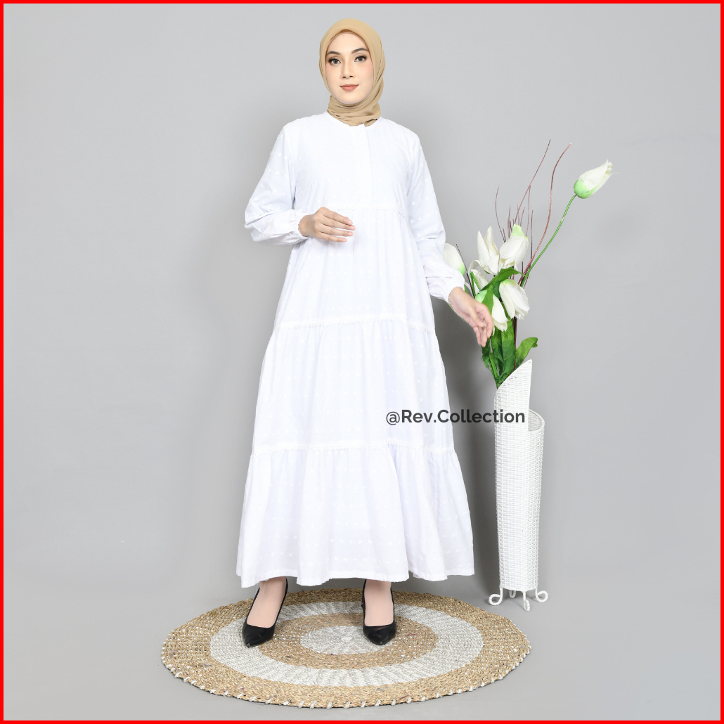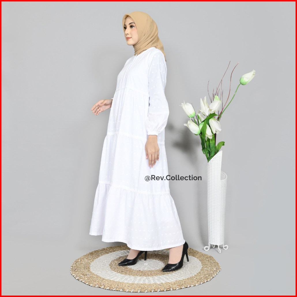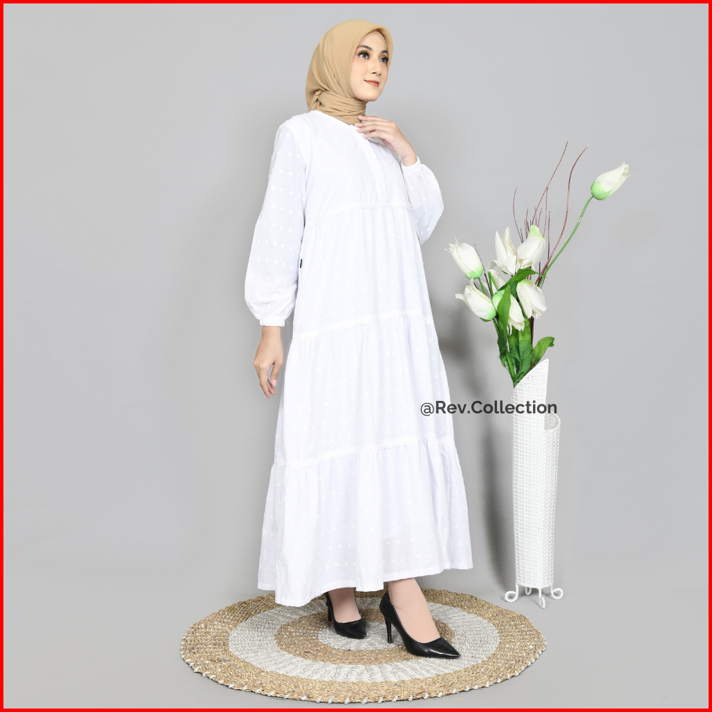 Rev Gamis Rempel Motif Bunga Busana Gamis Putih Wanita Muslimah