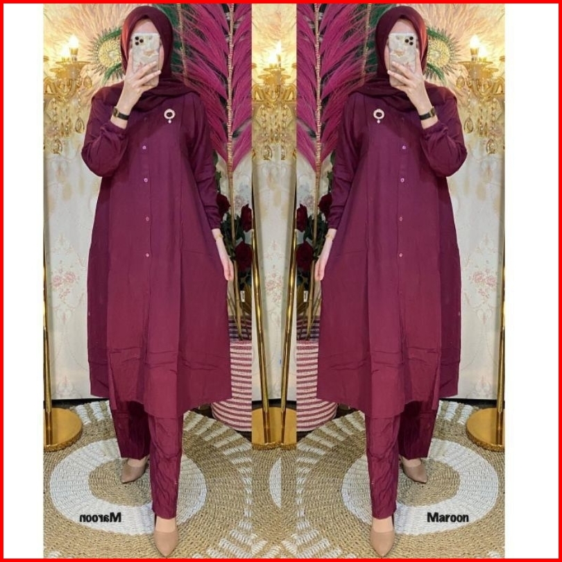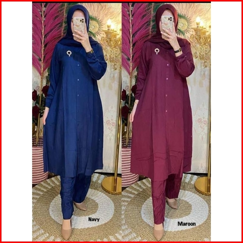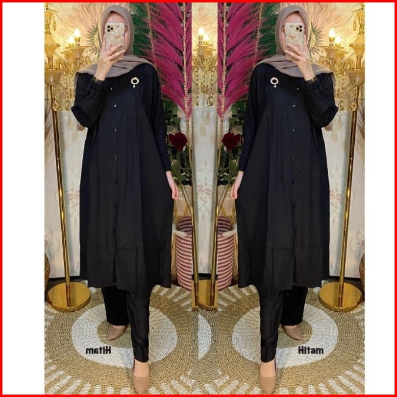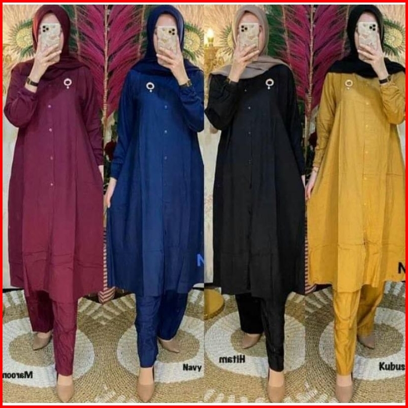 stelan tunik hitam, setelan tunik navi, setelan tunik kunyit, setelan tunik armi, Set tunik Marun, setelan tunik abu