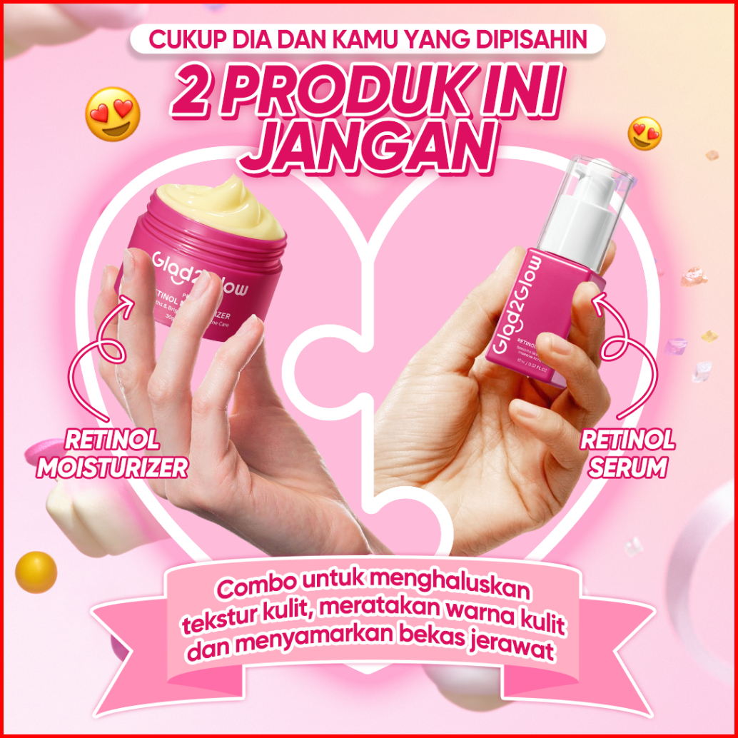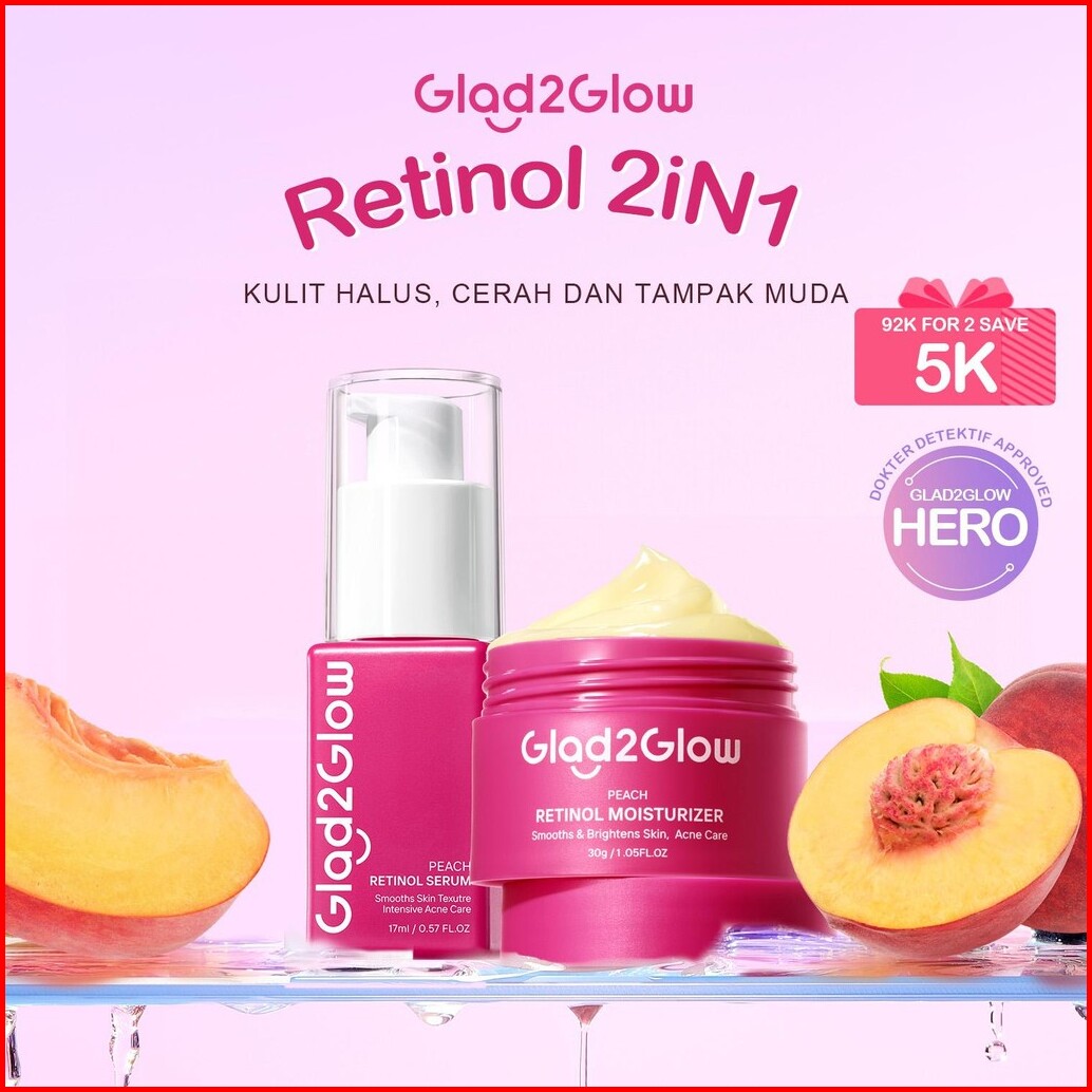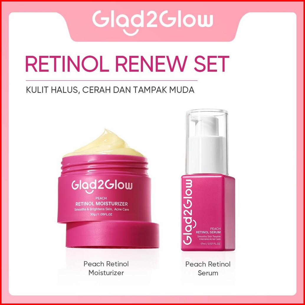 Glad2glow Paket Retinol Set 2 In 1 Bundle 2pcs - All Skin Types Peach Retinol Serum Retinol Moisturizer Renew Hero Produ