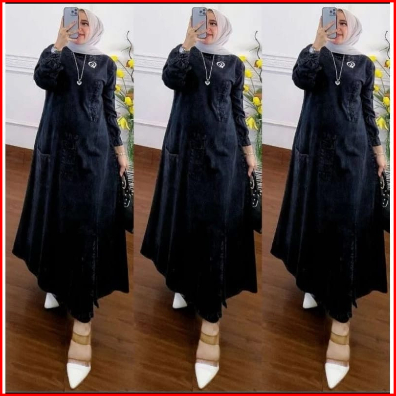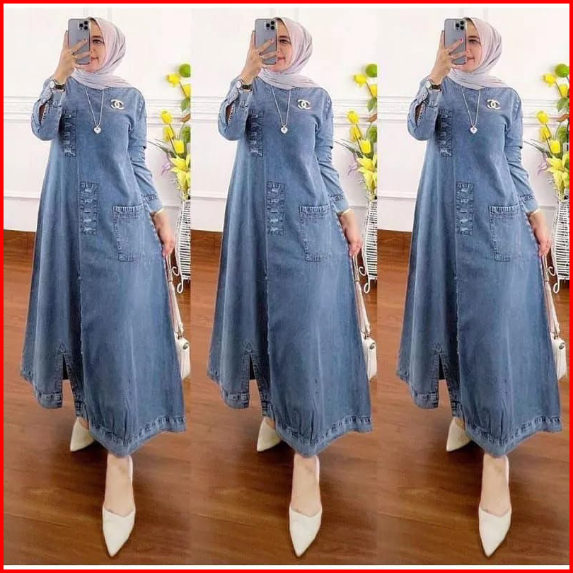 Baju Gamis Jeans Wanita Terbaru Ld 110 Pb 120 Gamis Lepis Sobek Kekinian Dress Denim Wanita Muslimah
