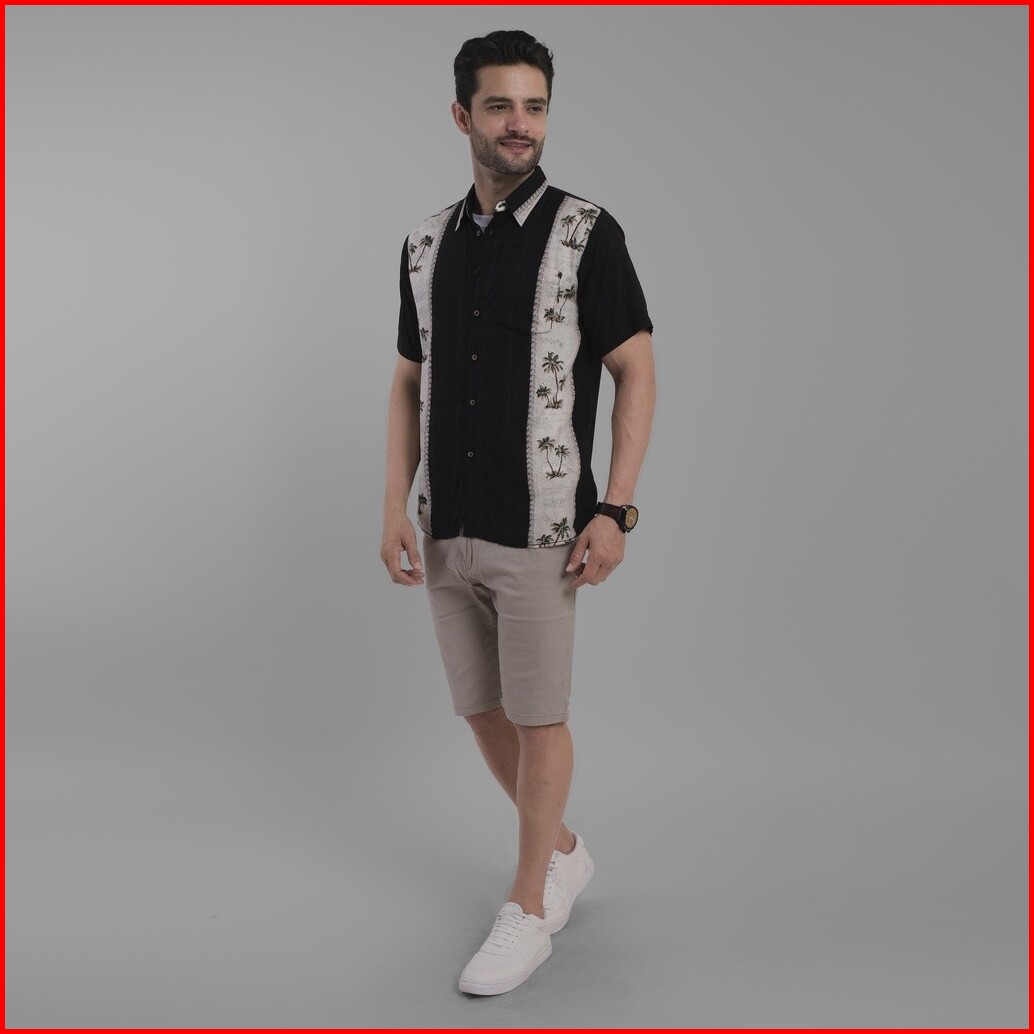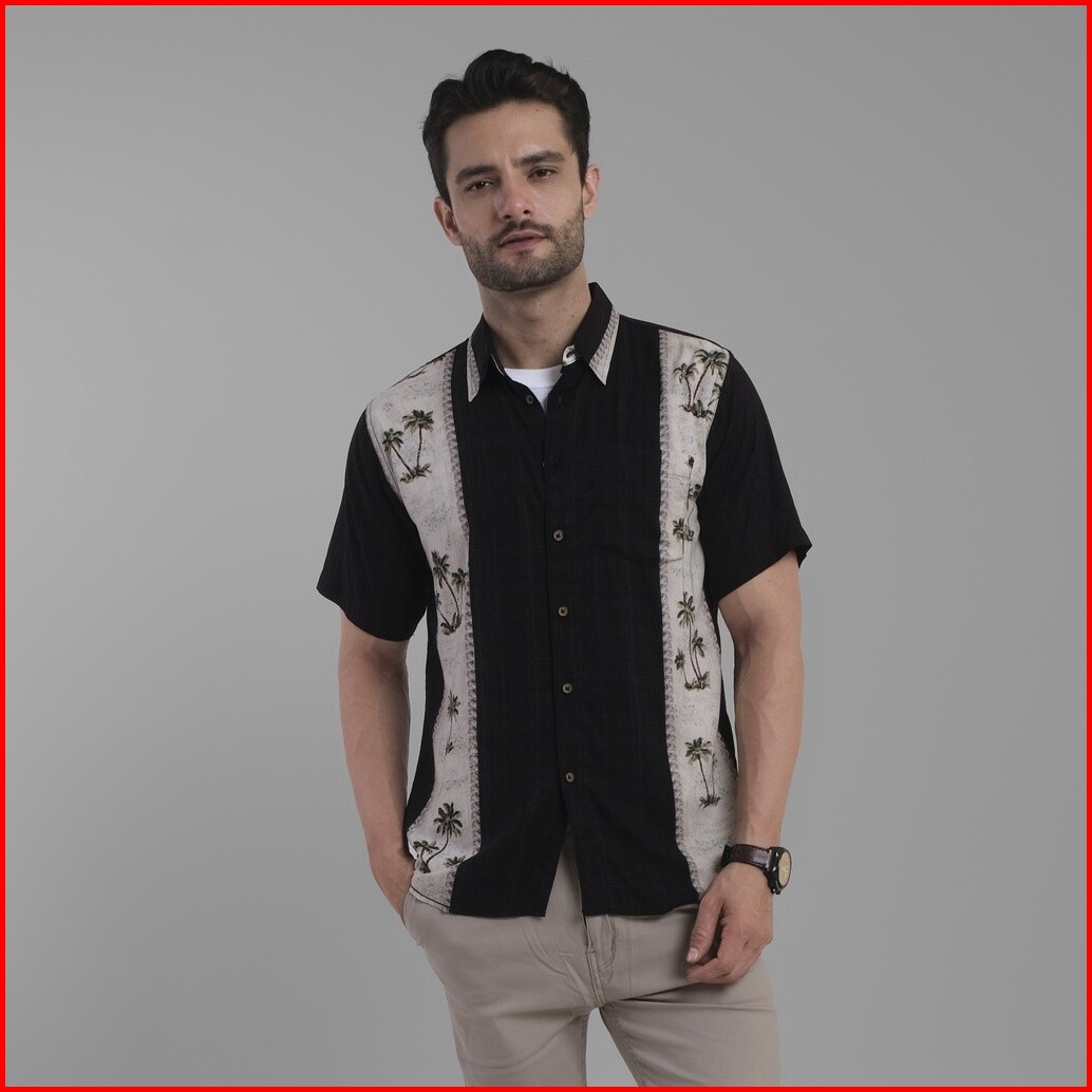 Dgm Fashion Kemeja Pria Printing Rayon Motif Kelapa Hitam 6758