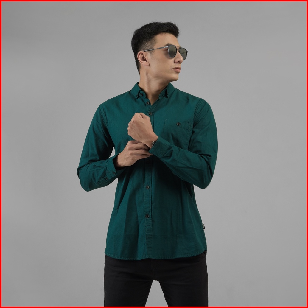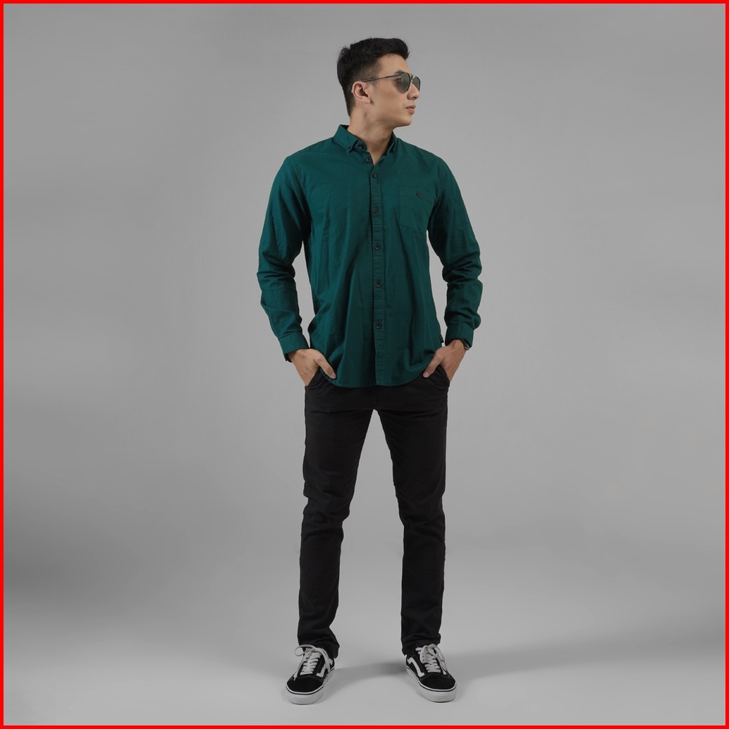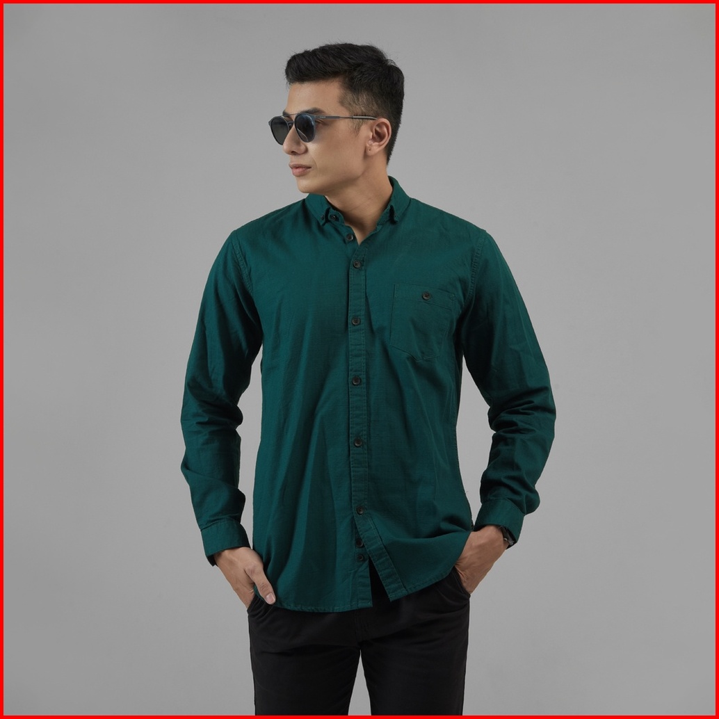 Dgm Fashion Kemeja Pria Basic Polos Lengan Panjang Bootle Green 1005