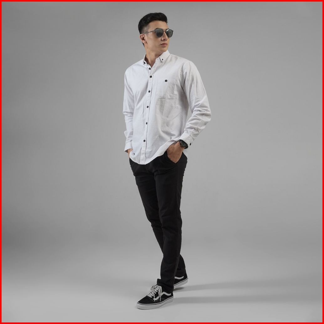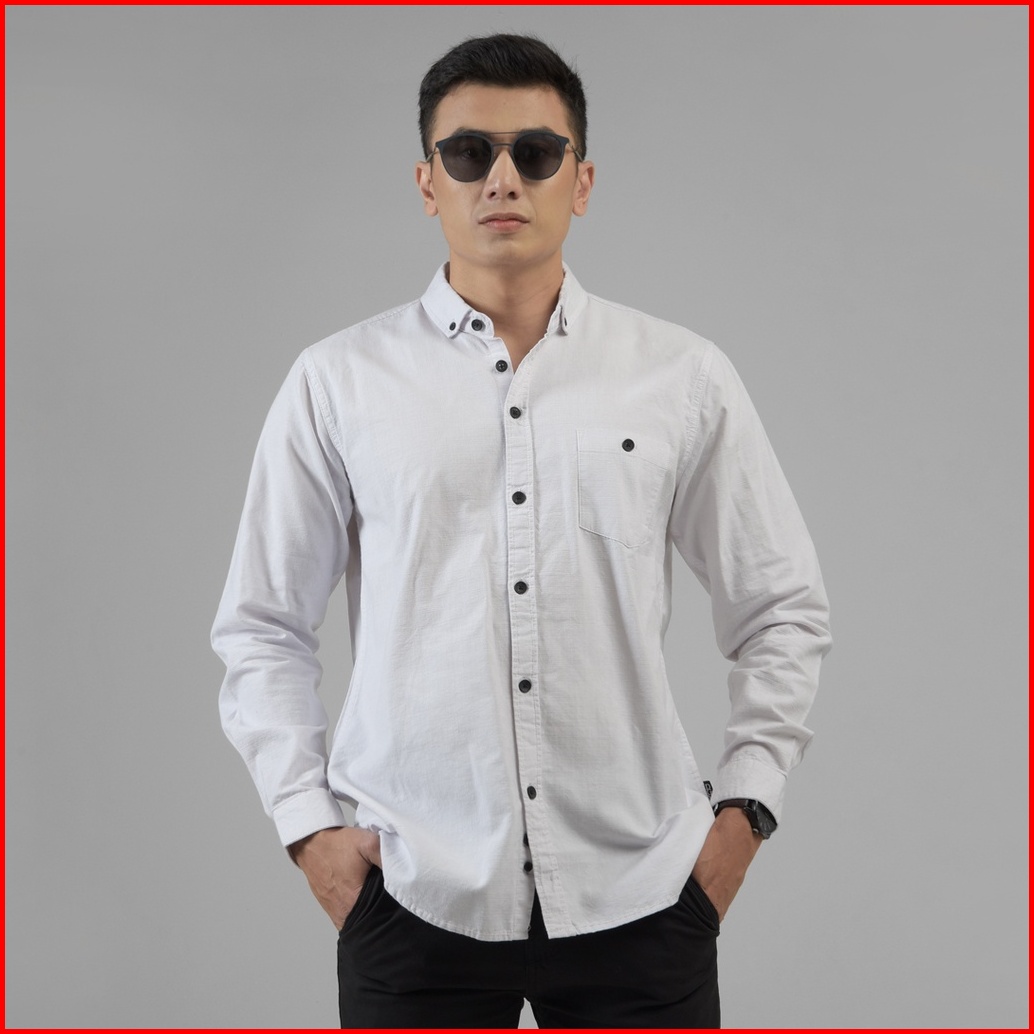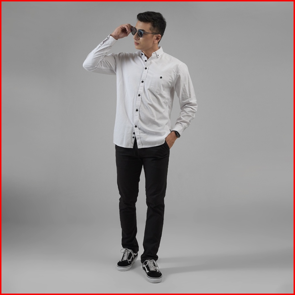 Dgm Kemeja Pria Basic Polos Lengan Panjang White 1003