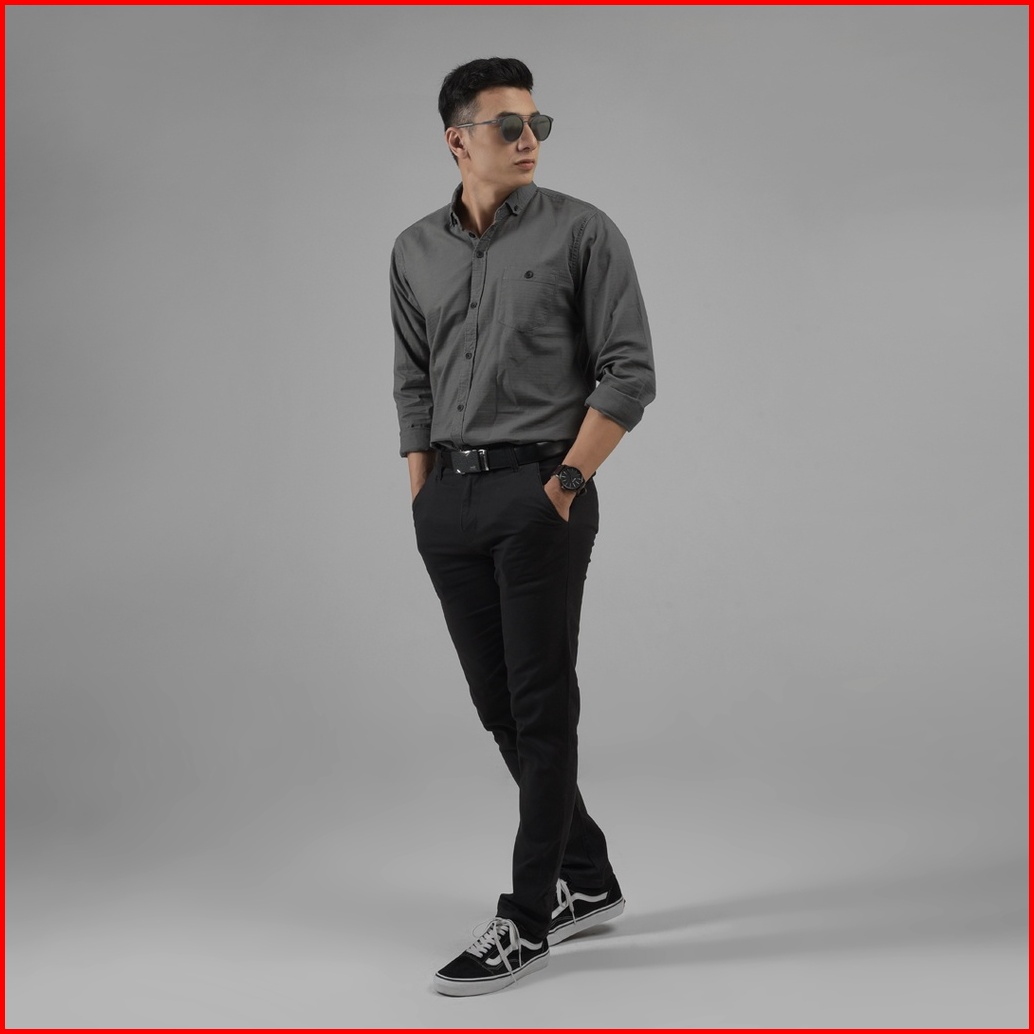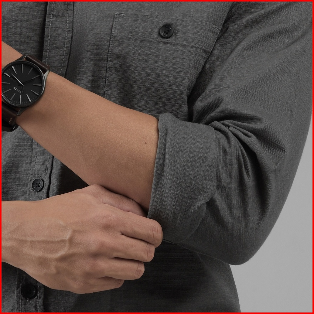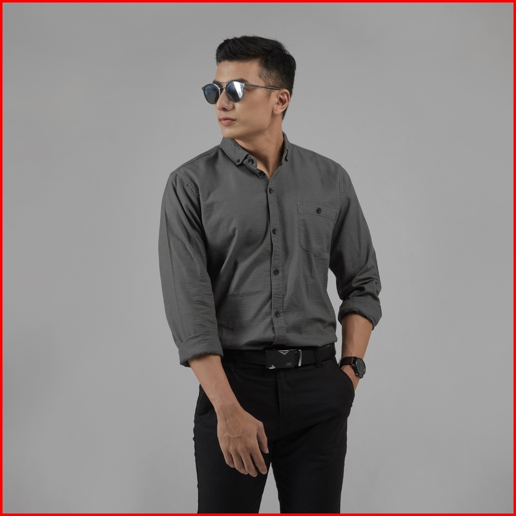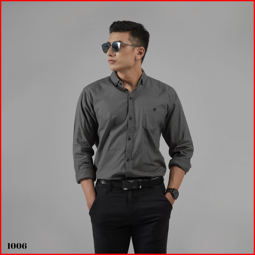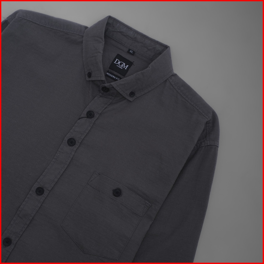 Dgm Fashion Kemeja Pria Basic Polos Lengan Panjang Dark Gray 1006