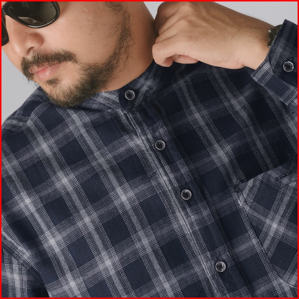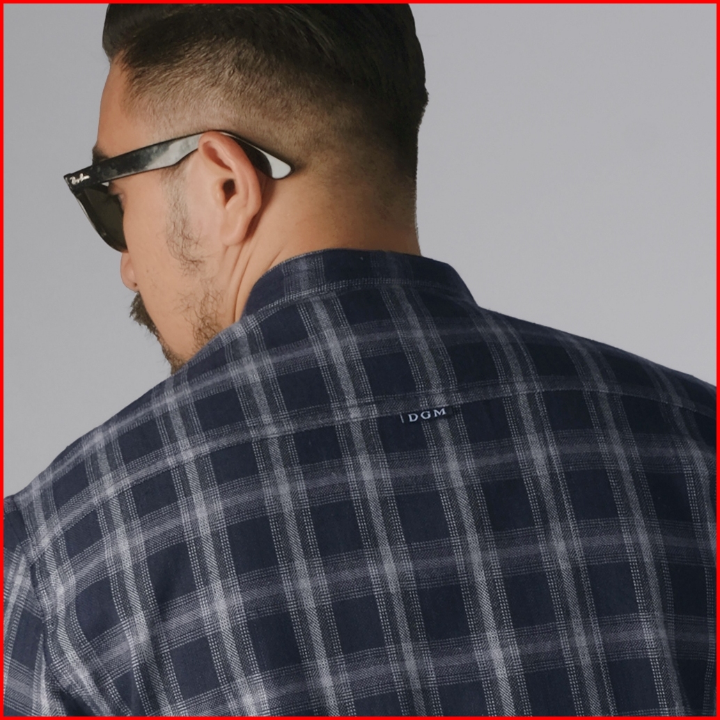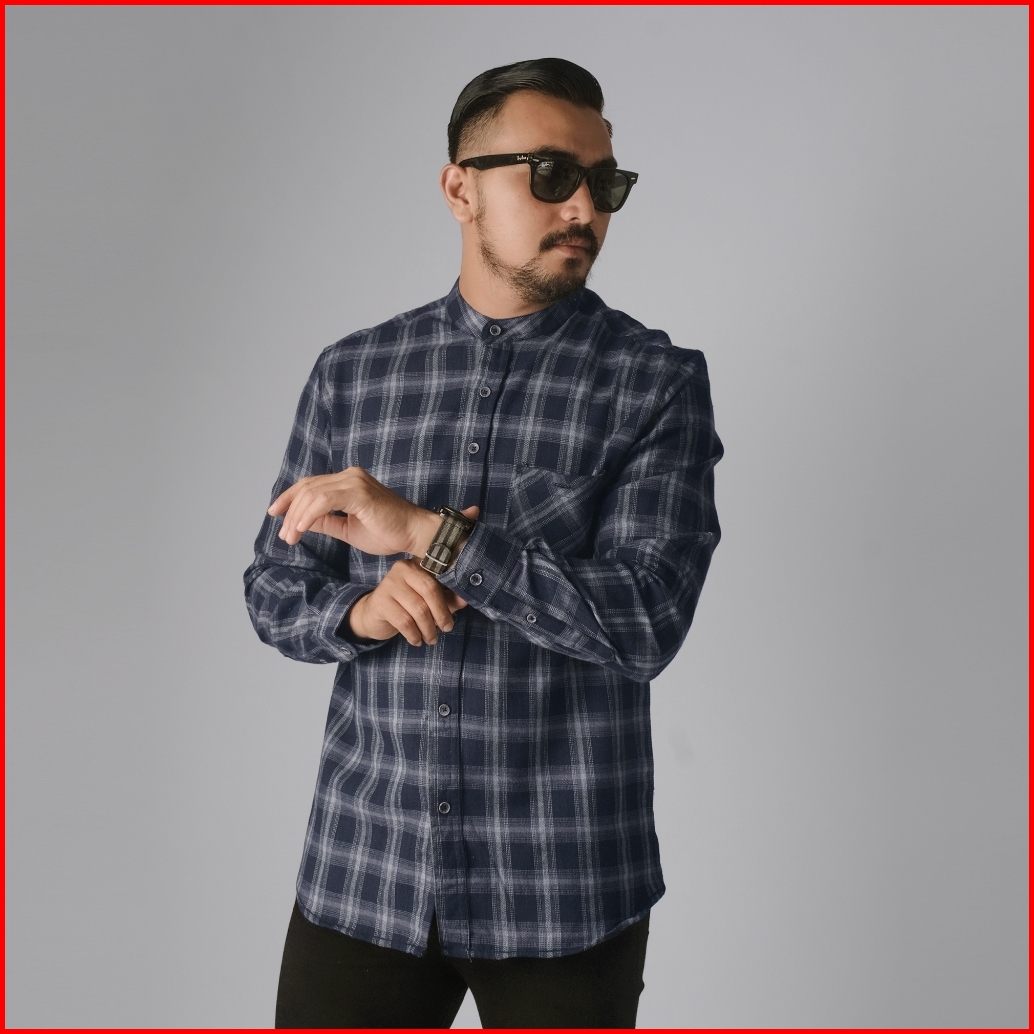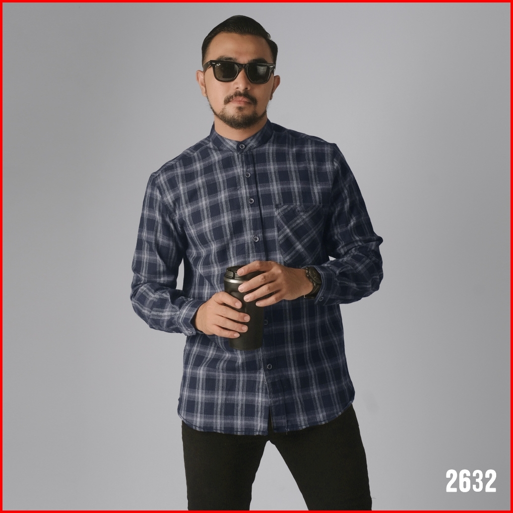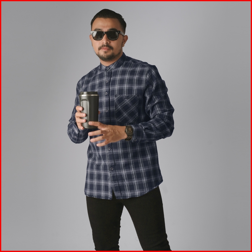 Dgm Kemeja Pria Flanel Kerah Sanghai Koko Lengan Panjang Premium Kemeja Koko Navy List Putih 2632