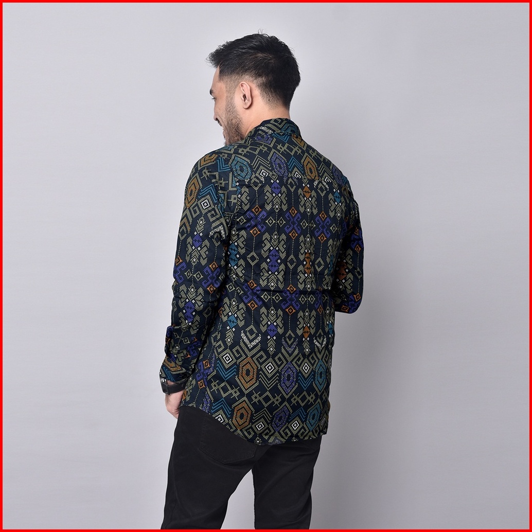 Dgm Kemeja Batik Pria Lengan Panjang Songket Tosca Premium 5387