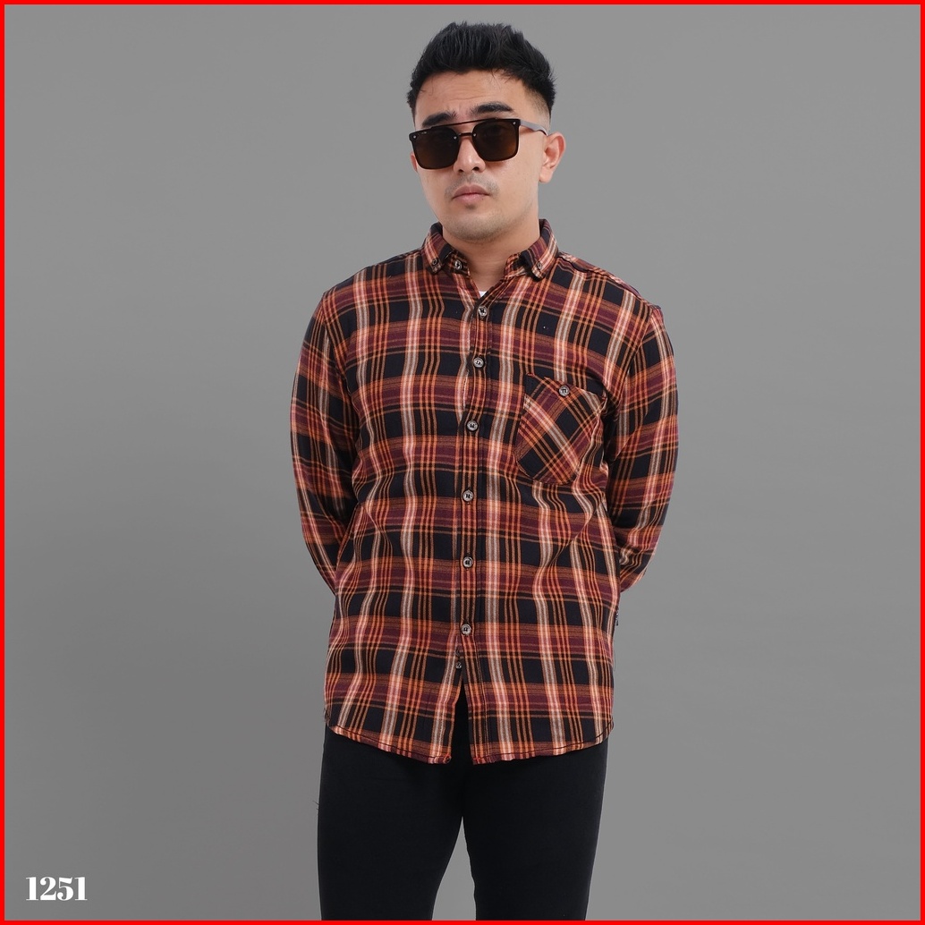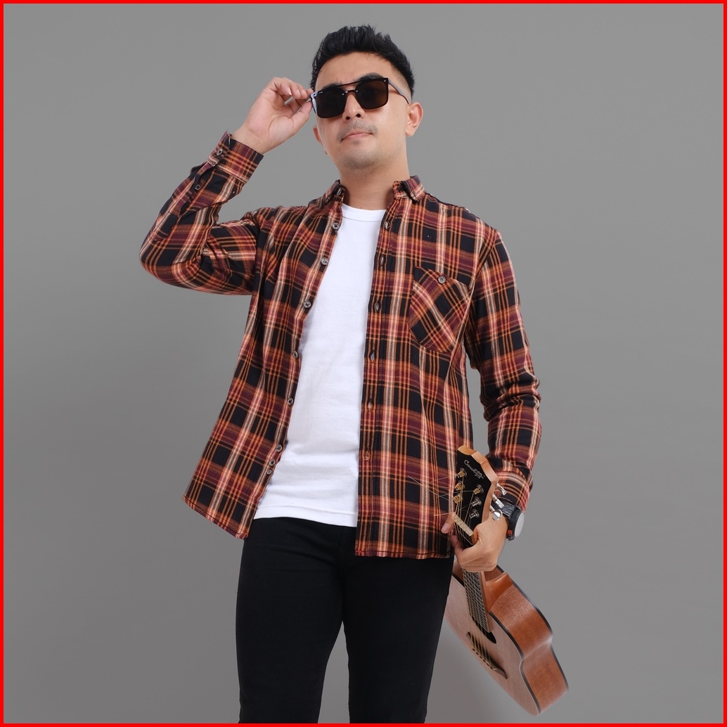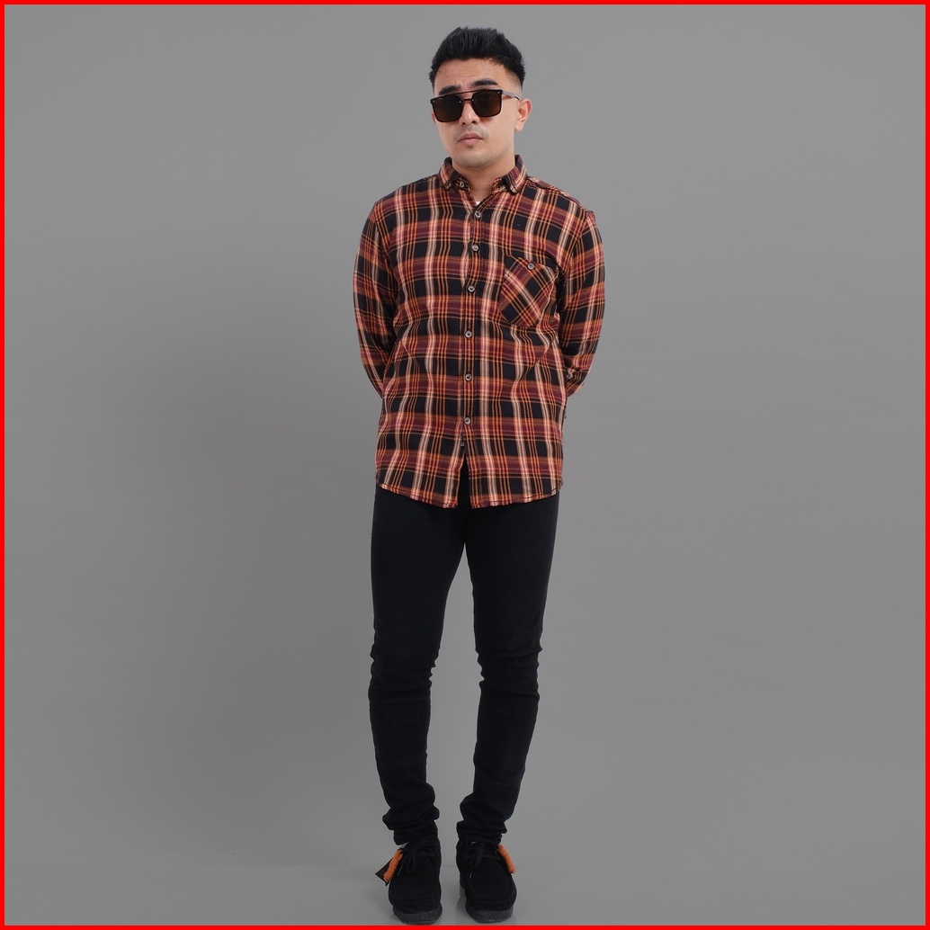 Dgm Fashion Kemeja Pria Flanel Premium Lengan Panjang Orange-hitam 1251
