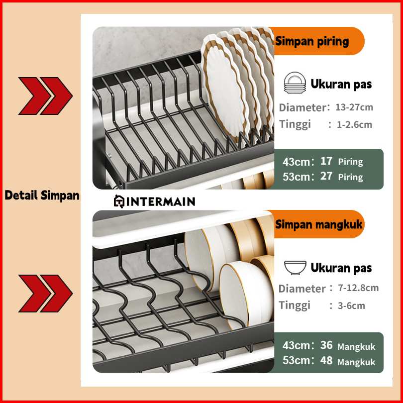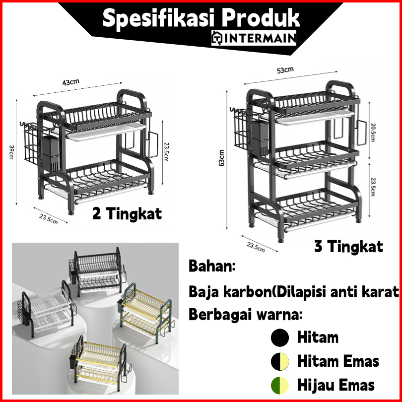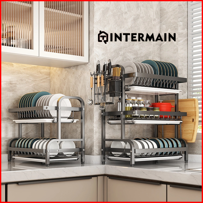 Rak Piring Dapur Stainless Steel Hitam Kapasitas Besar Anti Karat Untuk Meja Dapur Diskon In02