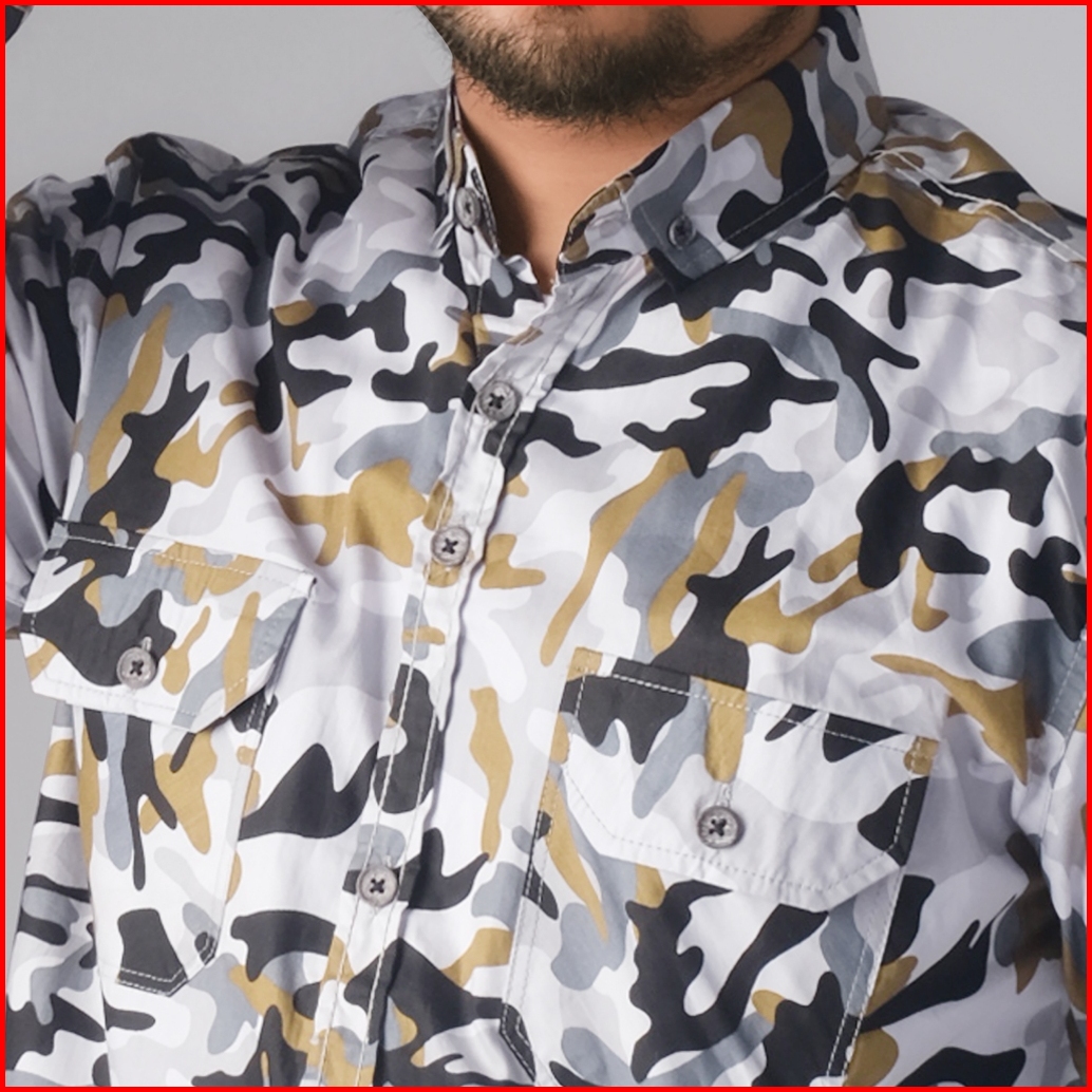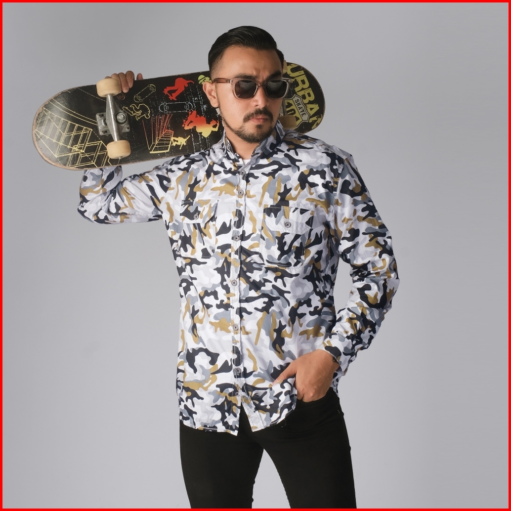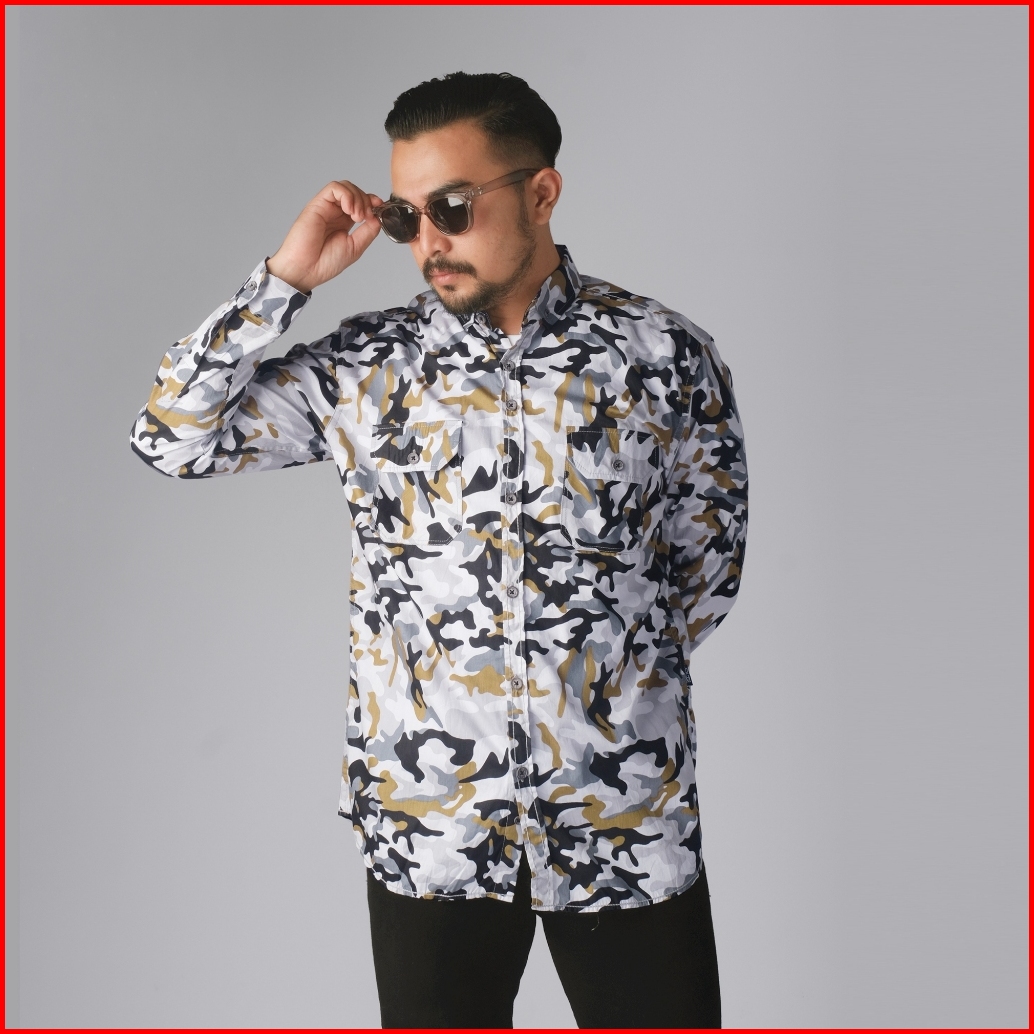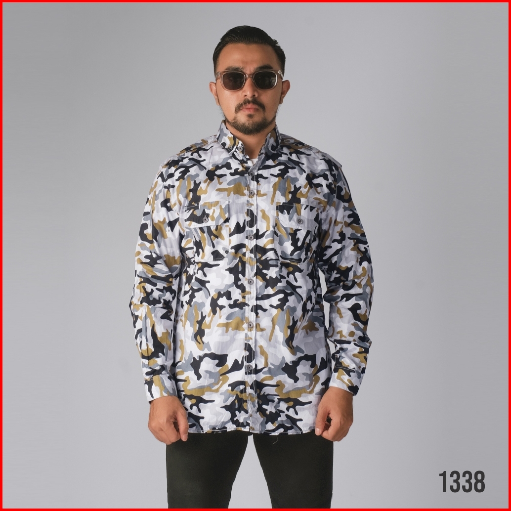 Dgm Kemeja Pria Loreng Panjang Premium Kemeja Loreng Coklat-abu Kemeja Kantong Dua 1338