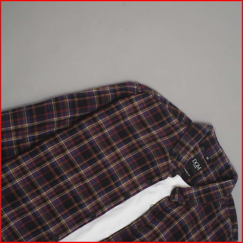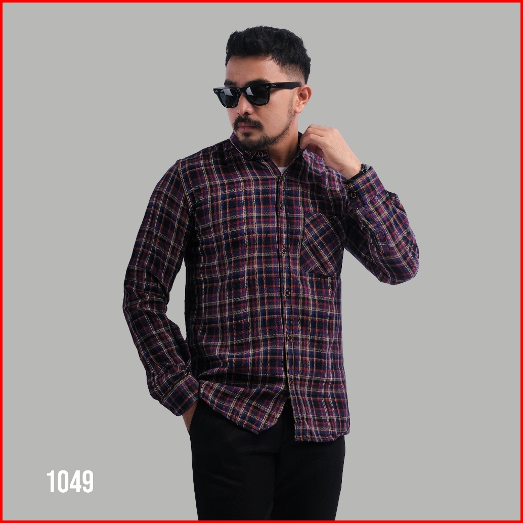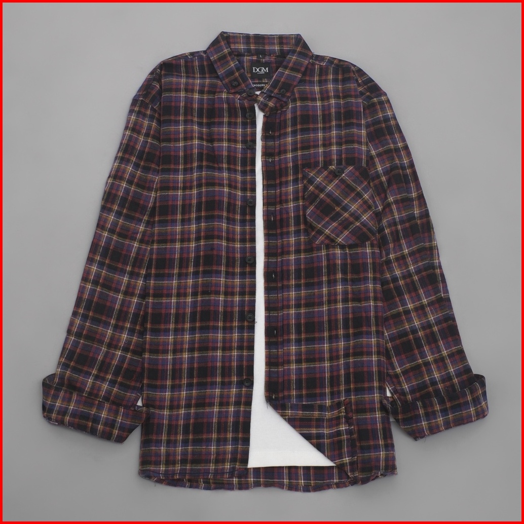 Dgm Fashion Kemeja Lengan Panjang Pria Flanel Panjang Garis Krem 1049