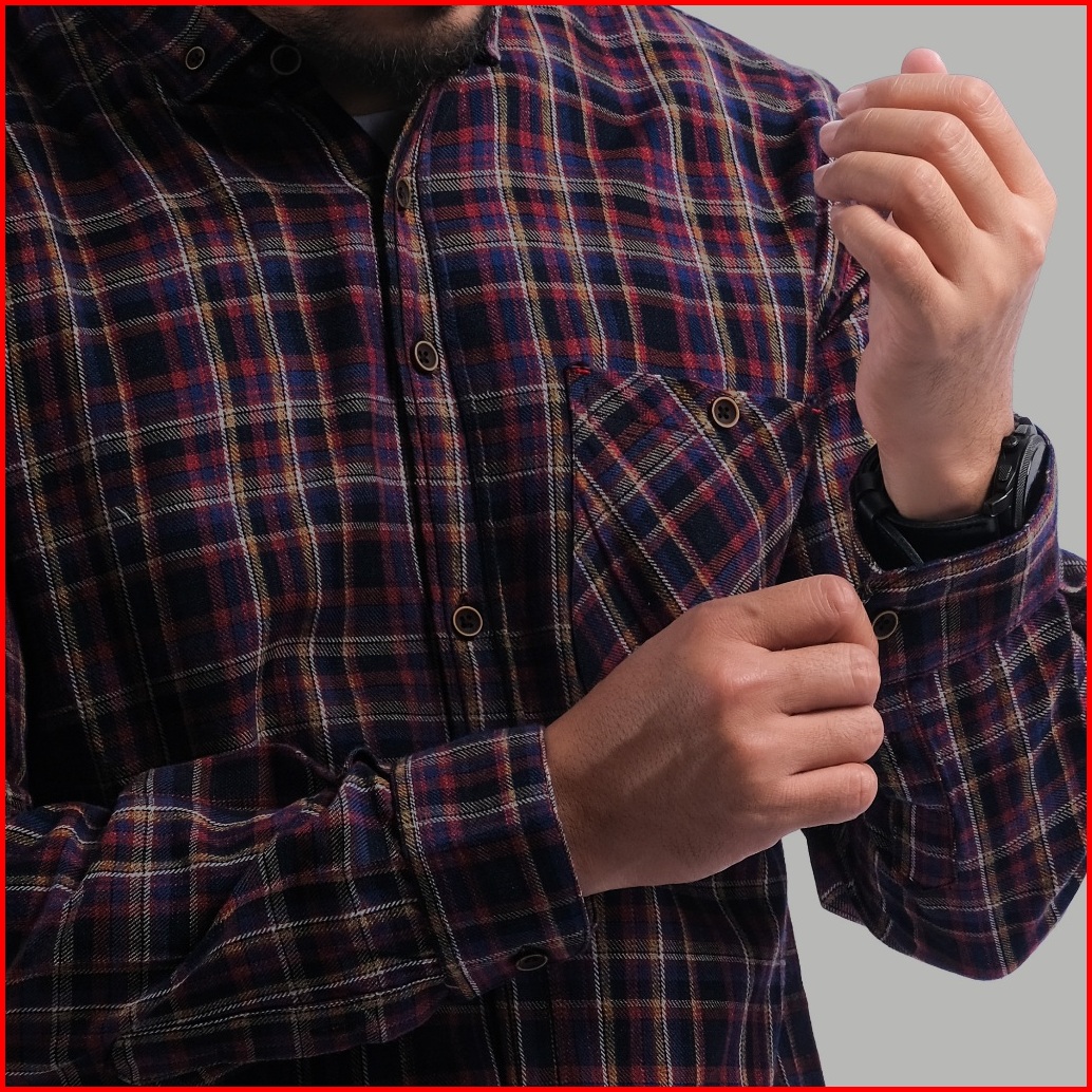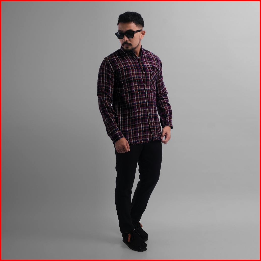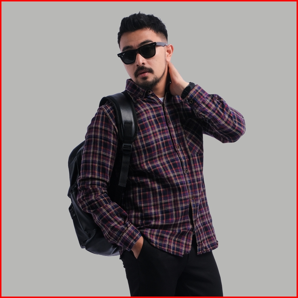 Dgm Fashion Kemeja Lengan Panjang Pria Flanel Panjang Garis Krem 1049