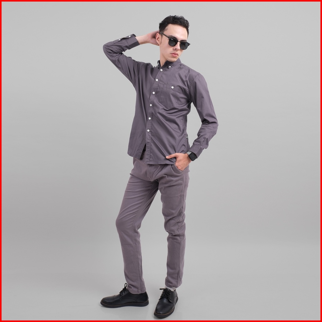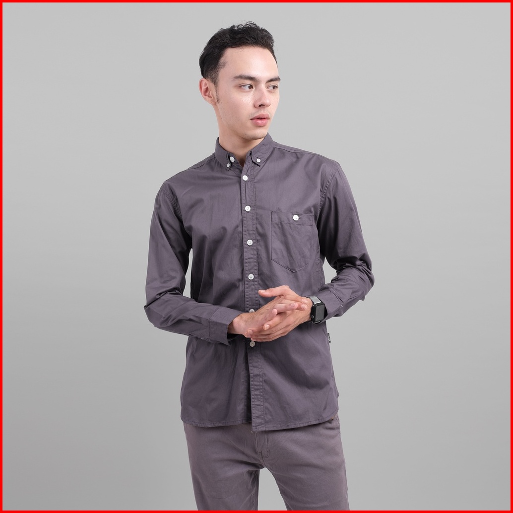Dgm Kemeja Pria Lengan Panjang Polos Kemeja Polos Wax Oil Kemeja Lilac 1487
