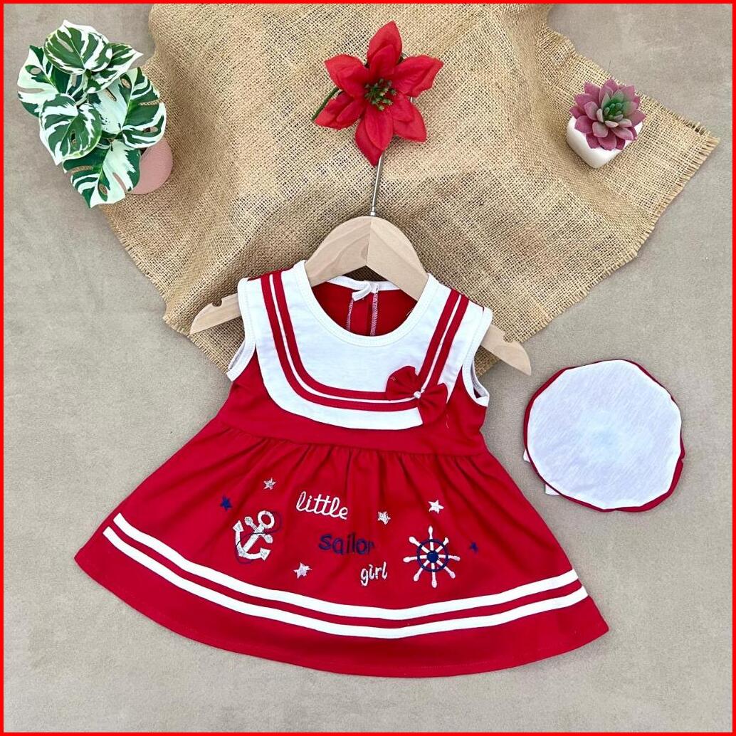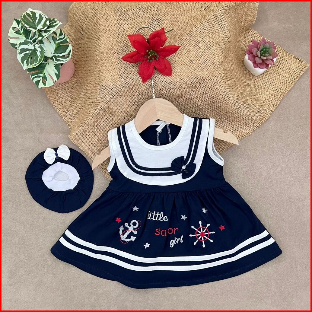 Dress Bayi Perempuan Katun 6-12 Bulan Motif Little Sailor