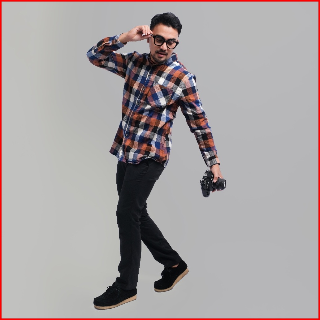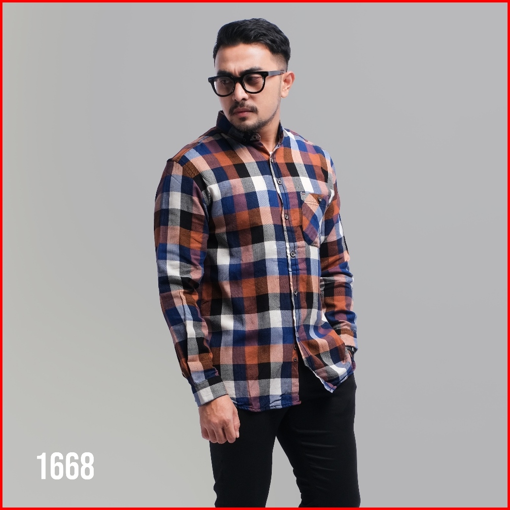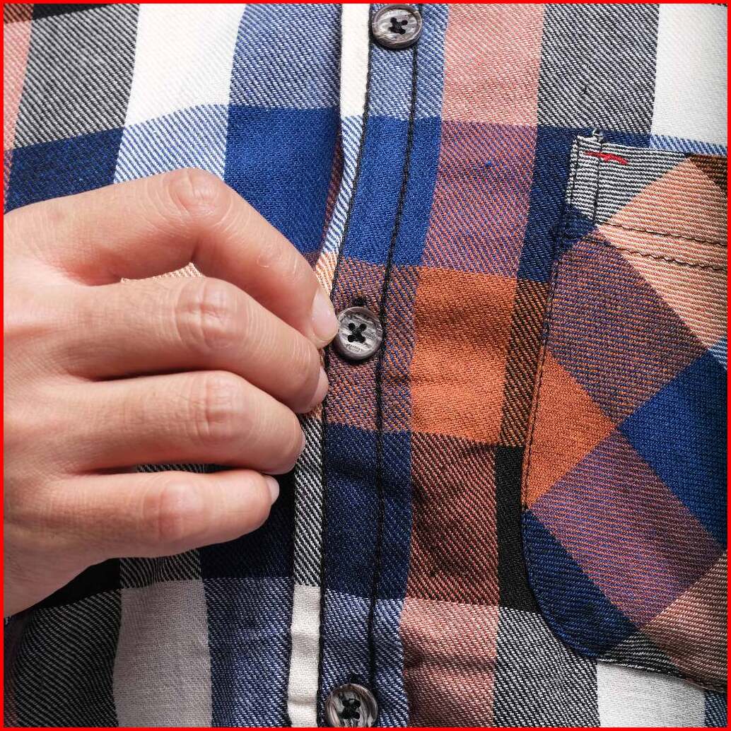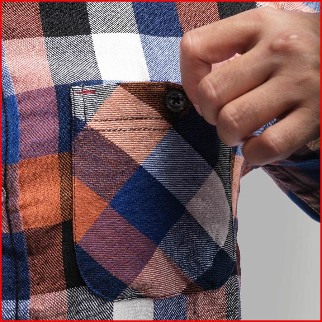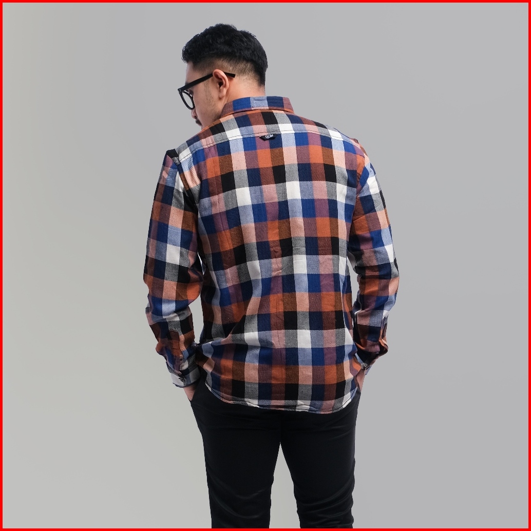 Dgm Fashion Kemeja Pria Flanel Premium Lengan Panjang Kotak Orange Biru Dan Putih 1668