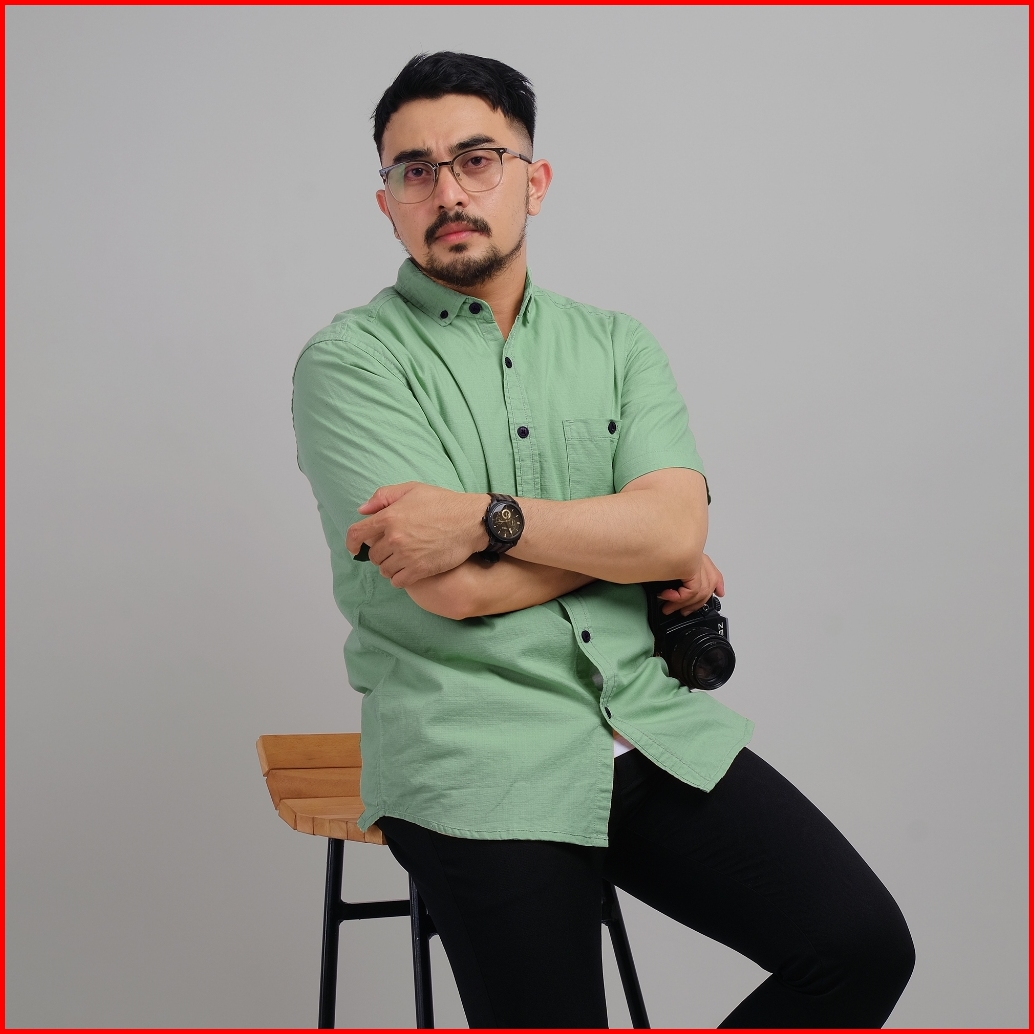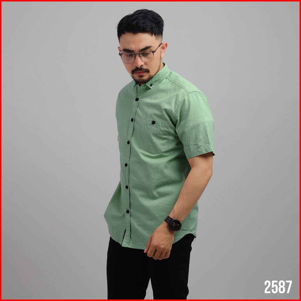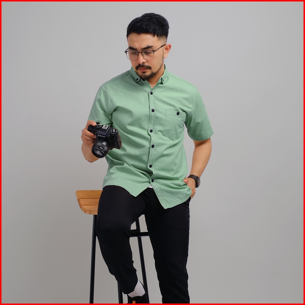 Dgm Kemeja Pria Polos Sage Lengan Pendek Kerah Collar Premium 2587