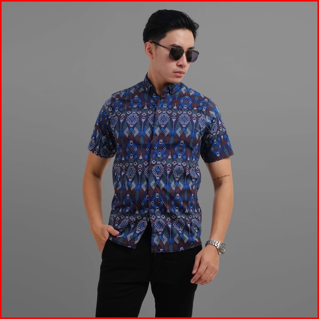 Dgm Fashion Kemeja Batik Lengan Pendek Jumbo Torpedo Biru 6124