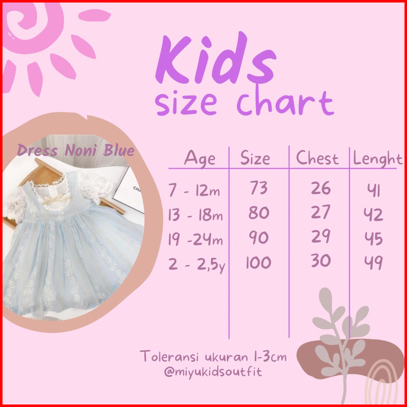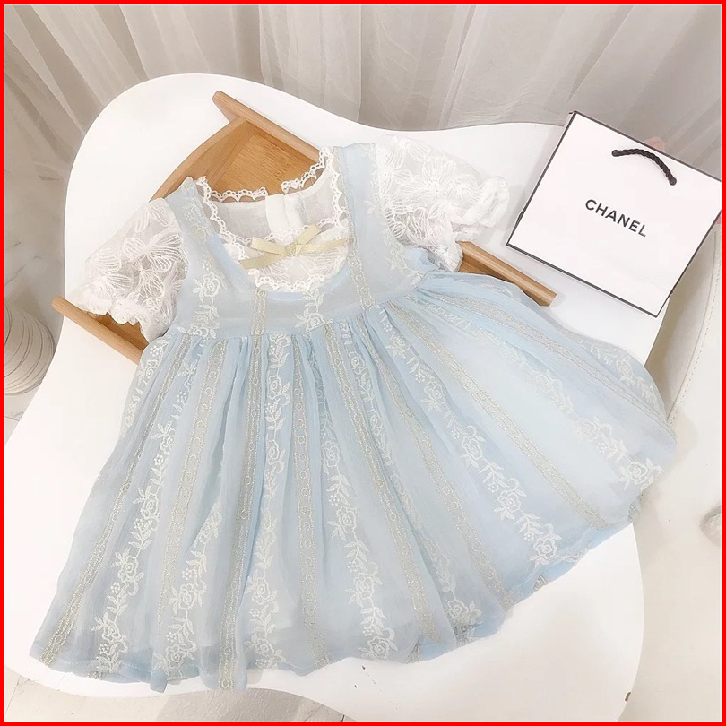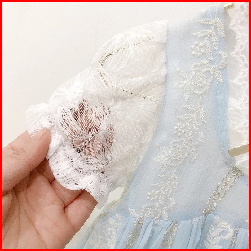 Dress Noni Blue Ala Putri Kerajaan Gaun Biru Muda Kombinasi Putih Brukat Korean Style Eropa Style Anak Perempuan Bayi Pe