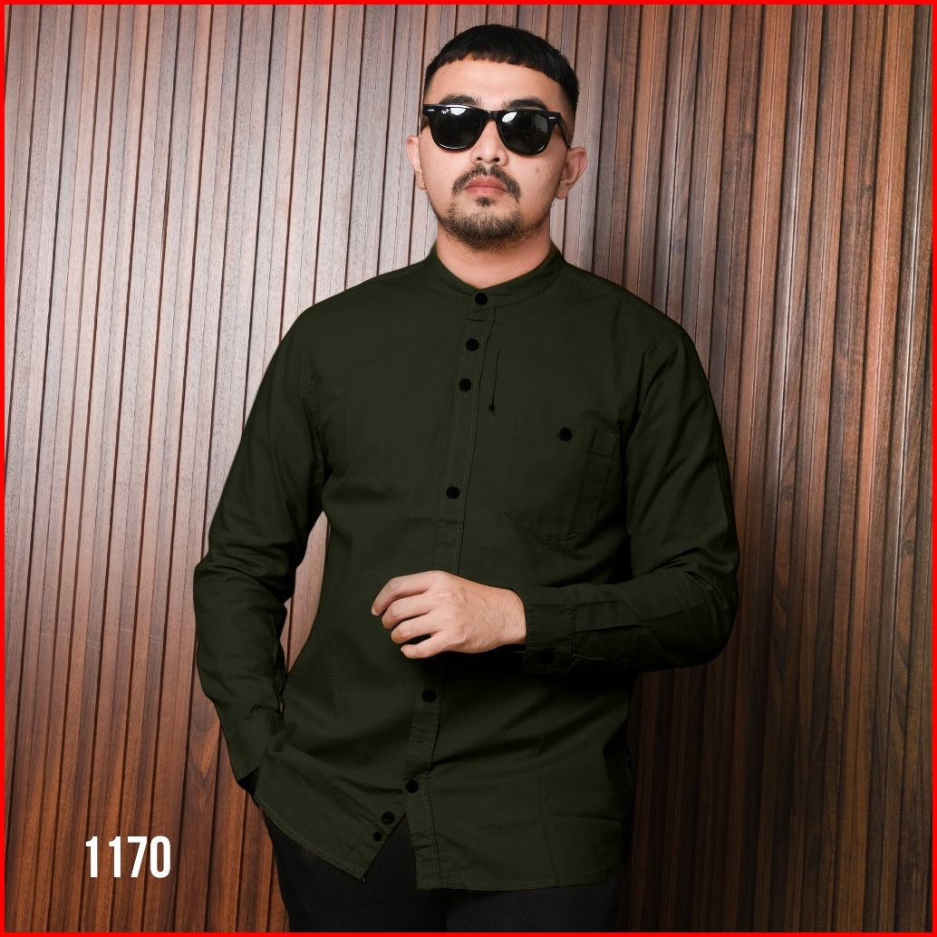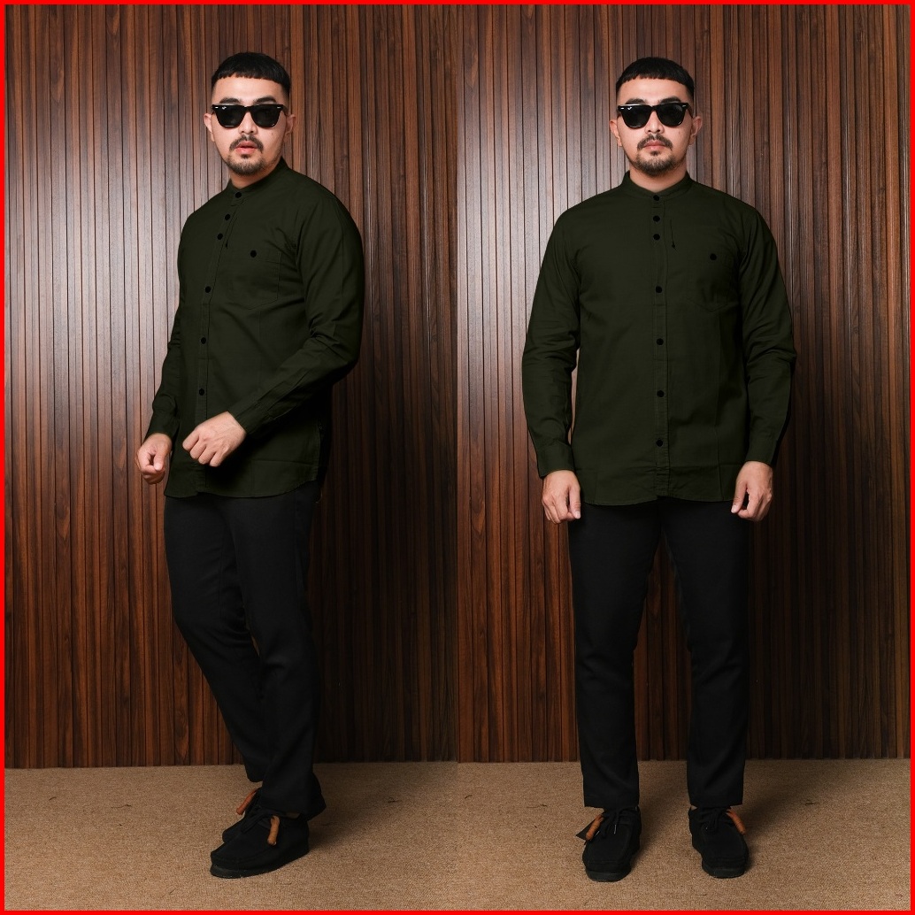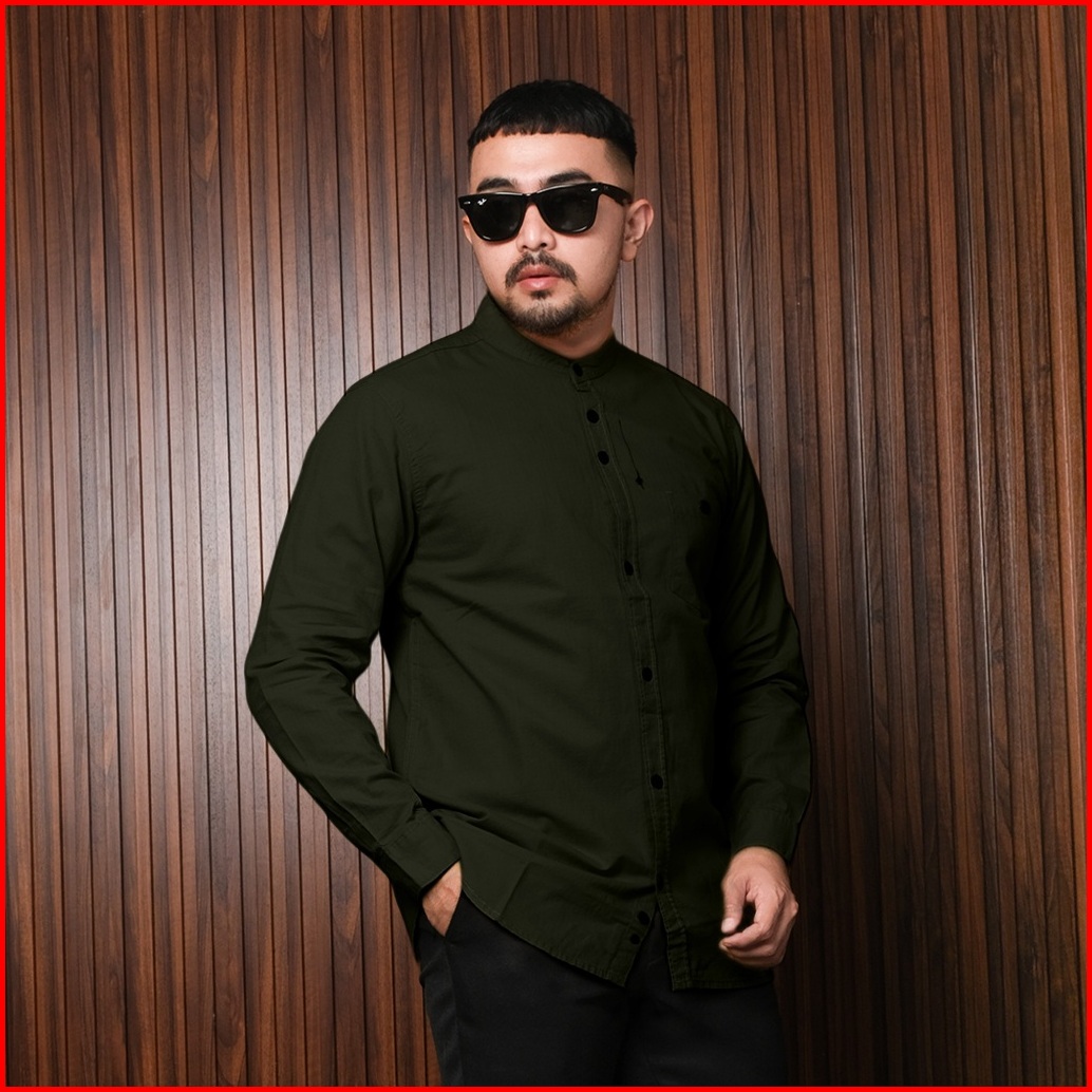 Dgm Kemeja Polos Sanghai Lengan Panjang Green Army 1170