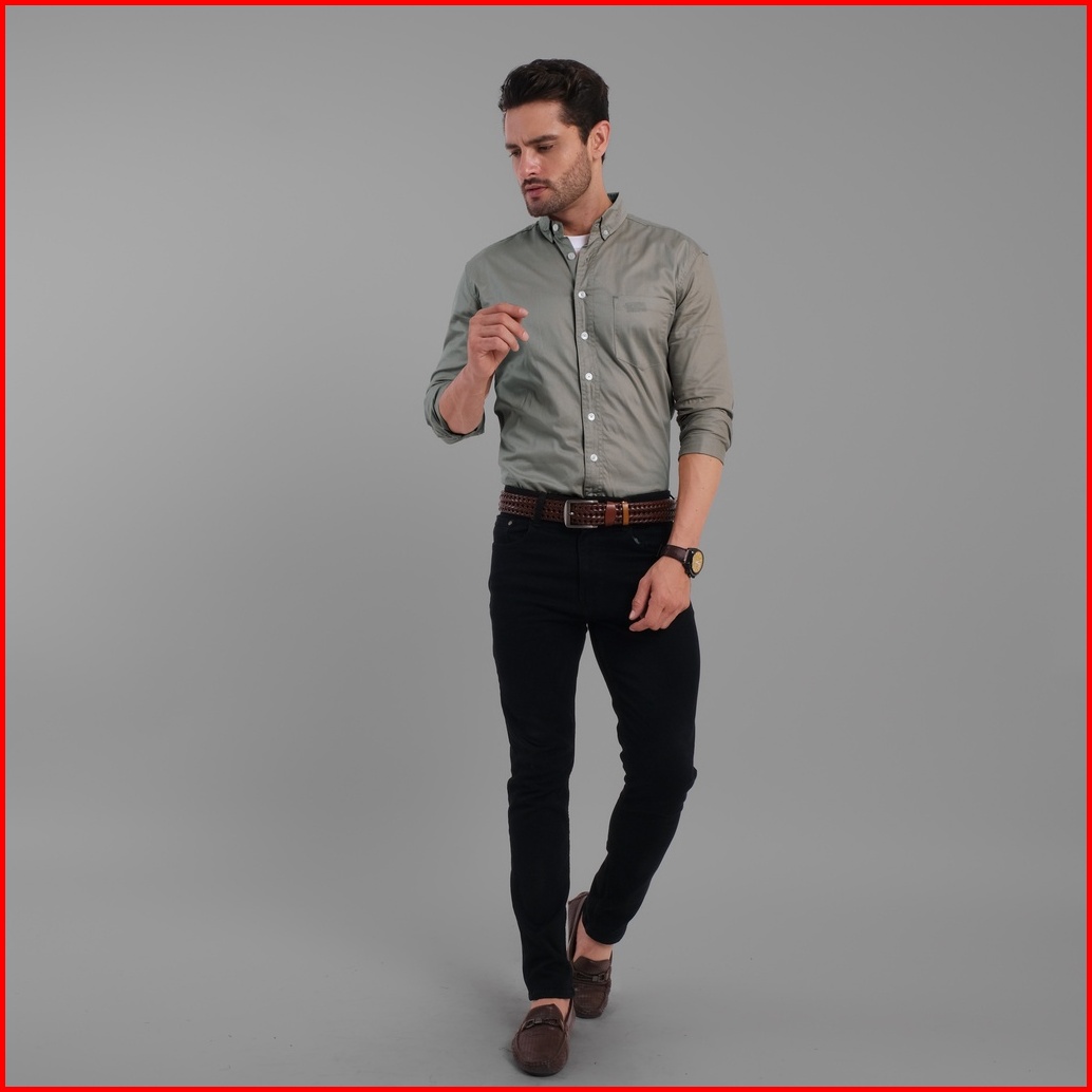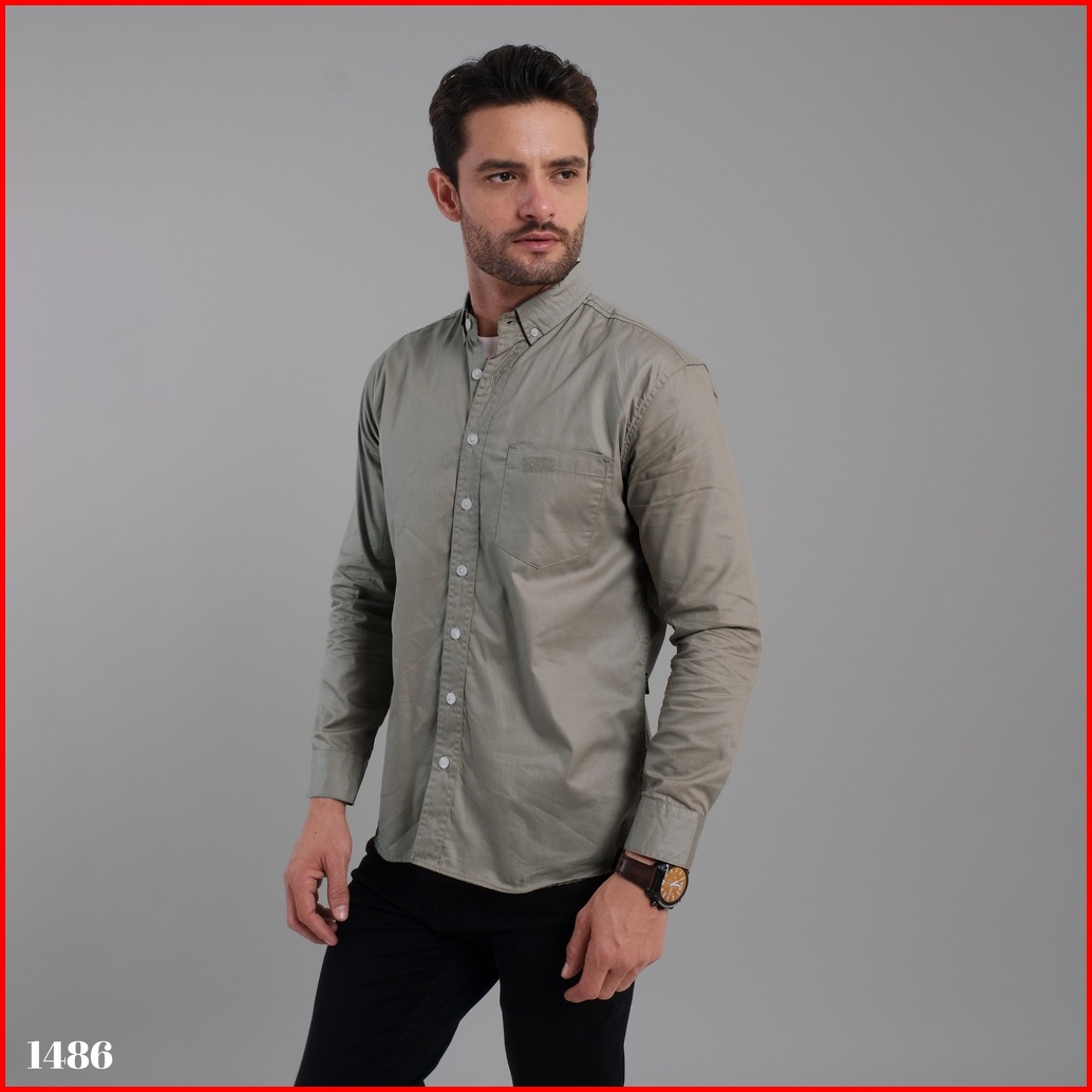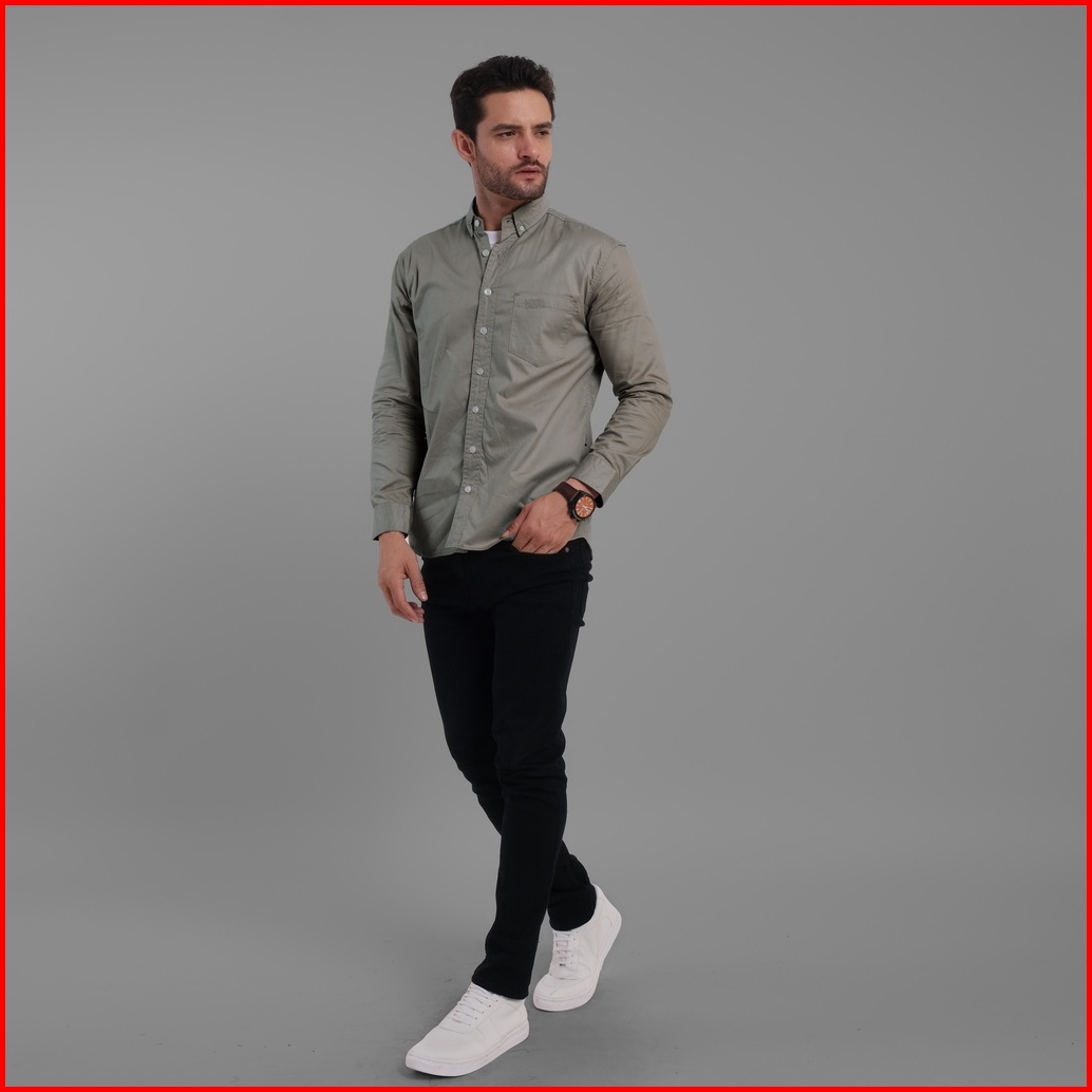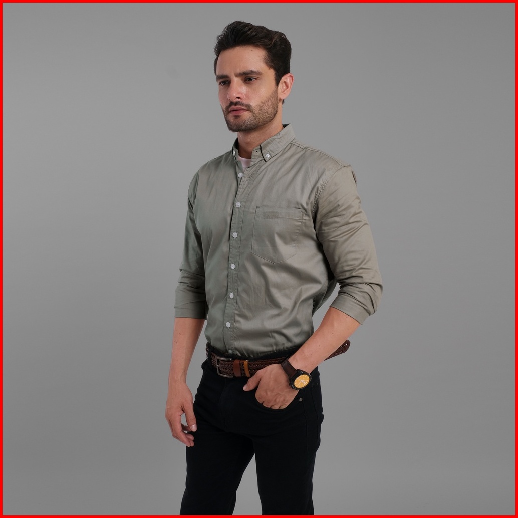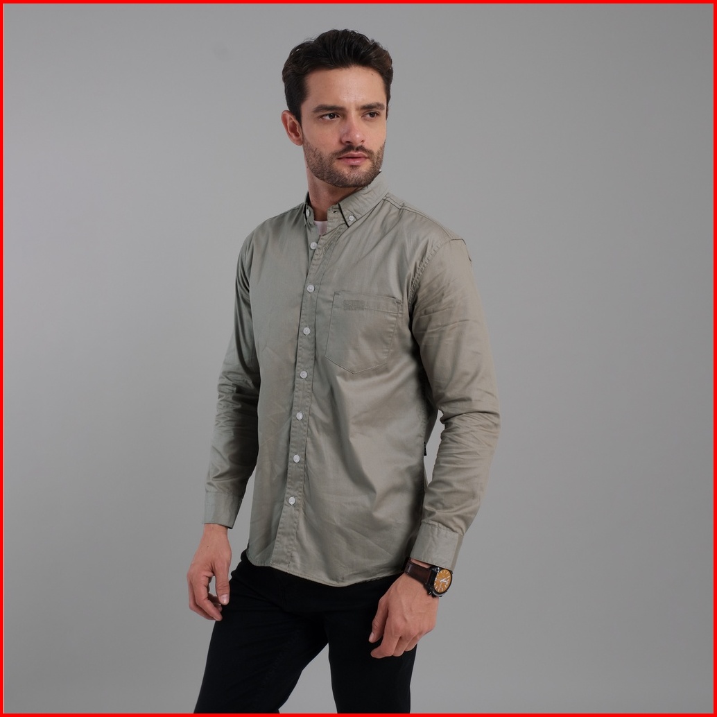 Dgm Kemeja Pria Polos Lengan Panjang Kemeja Pria Cotton Wax Oil Grey Kemeja 1486