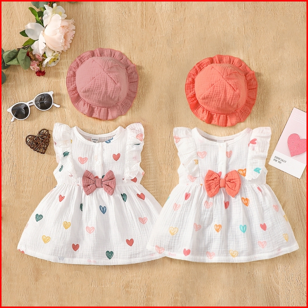 Baby Girl 0-9 Months 2pcs Clothing Set Cute Love Print Sleeveless Dress Headwear Fashion Cute Newborn Baby Wear Photogra