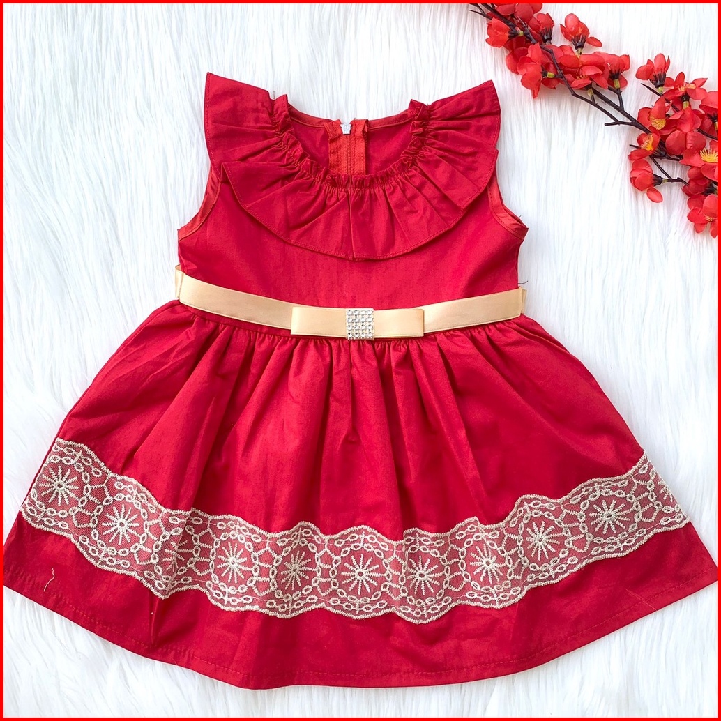 Baju Dress Pesta Lucu Merah Bestseller Anak Bayi Cewek Perempuan Murah -cas