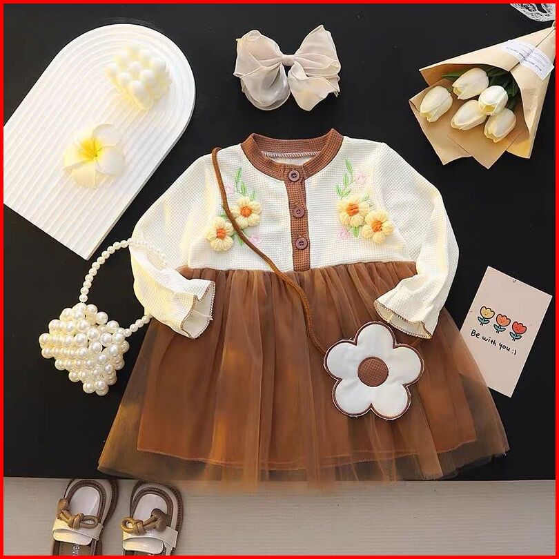 Dress Bayi Perempuan Motig Bunga Model Korea Terbaru 2023