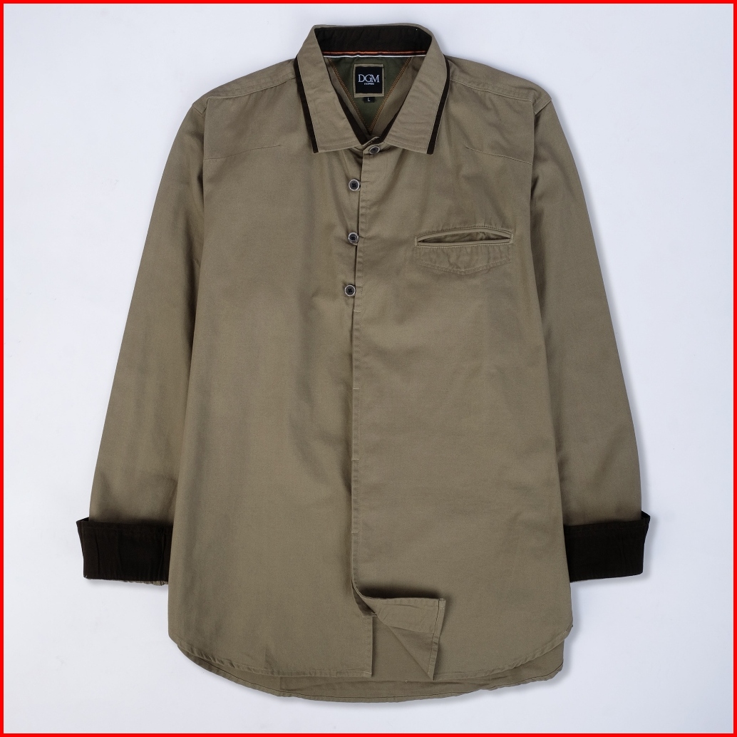 Dgm Workshirt Kemeja Kerja Katun Twill 30s Premium Lengan Panjang Kantong Bobok Kemeja Pria Coklat Artichoke Keenan 2579