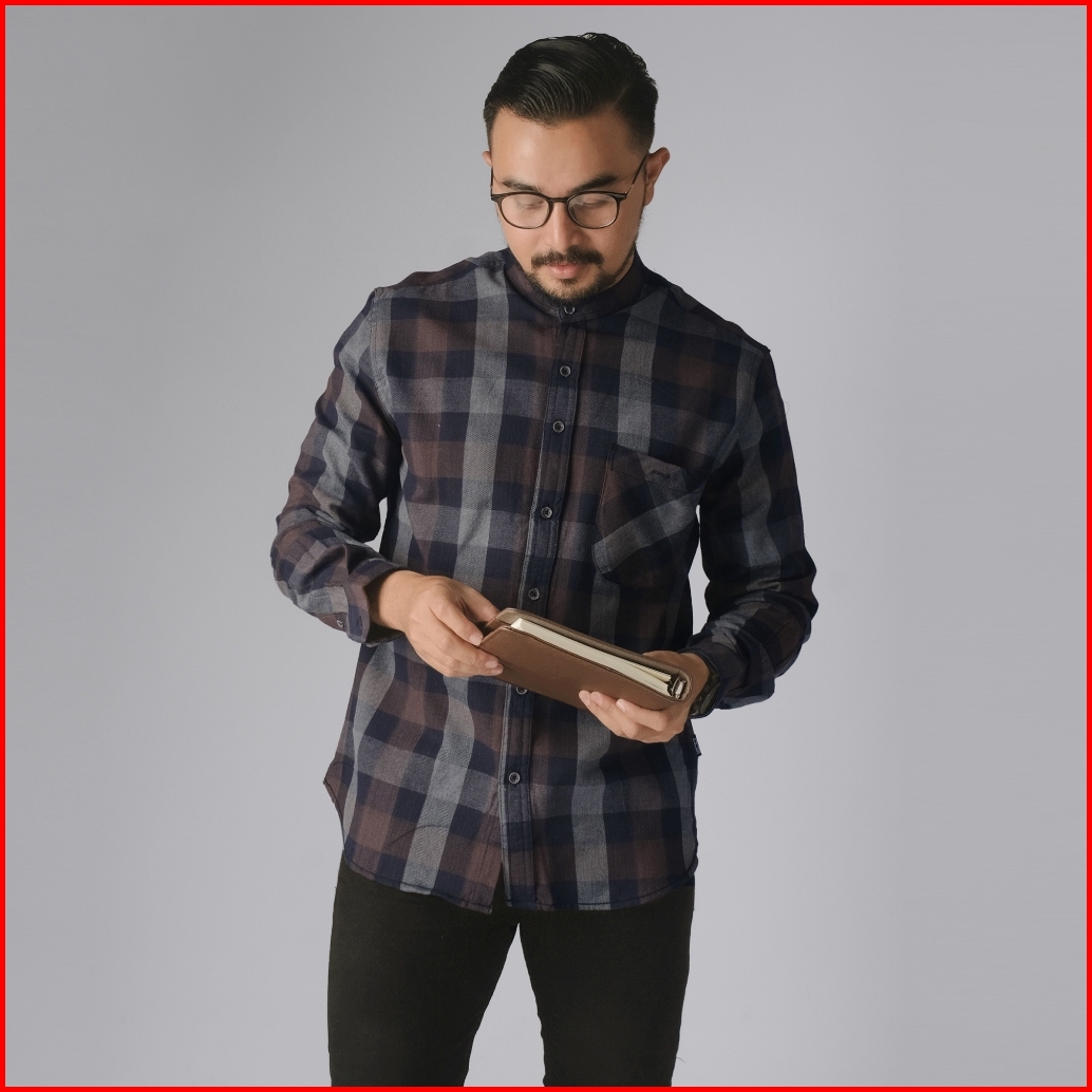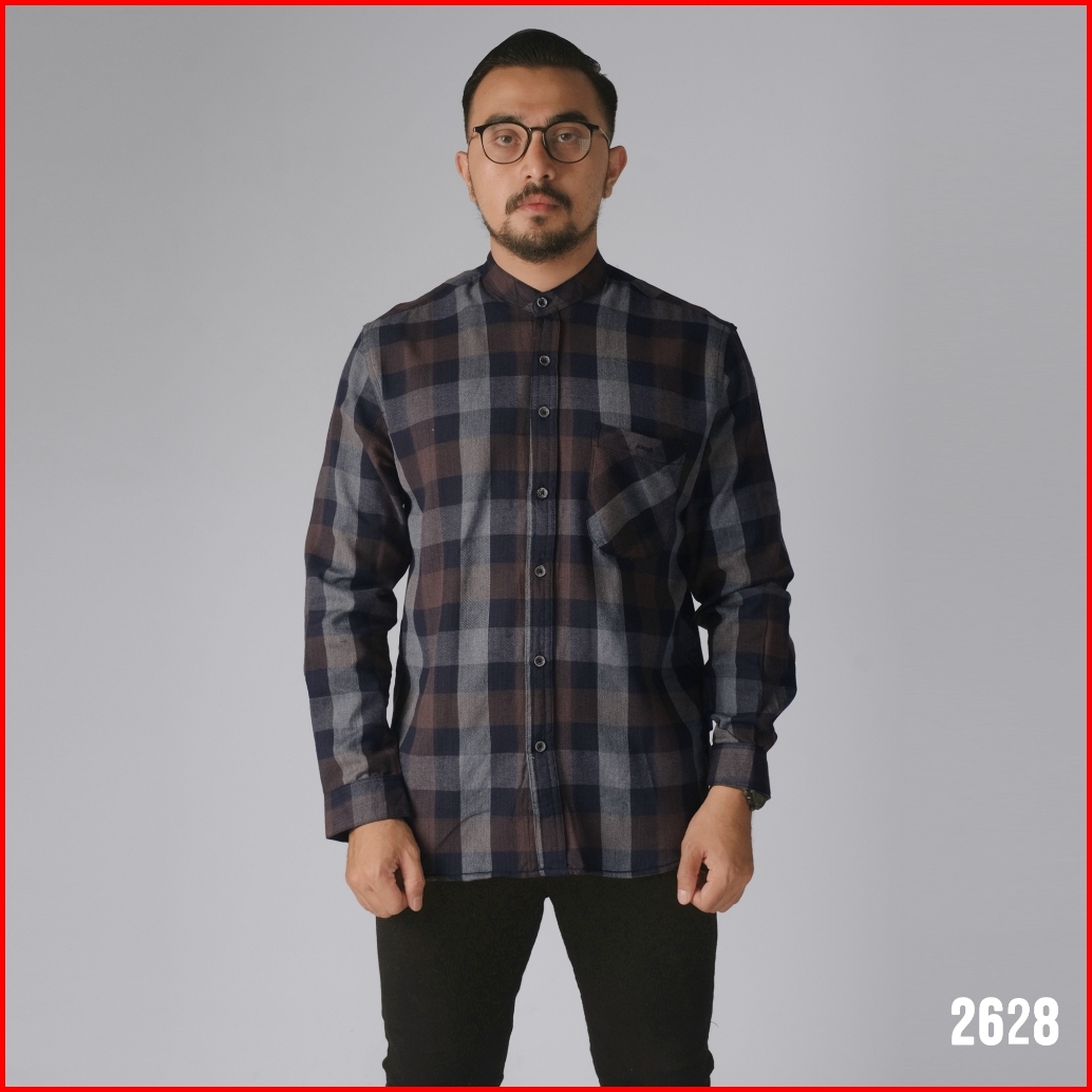 Dgm Kemeja Pria Flanel Kerah Sanghai Koko Lengan Panjang Premium Kemeja Koko Navy Coklat Abu 2628