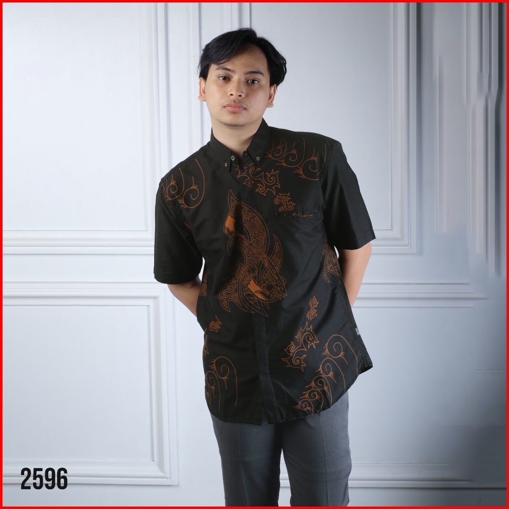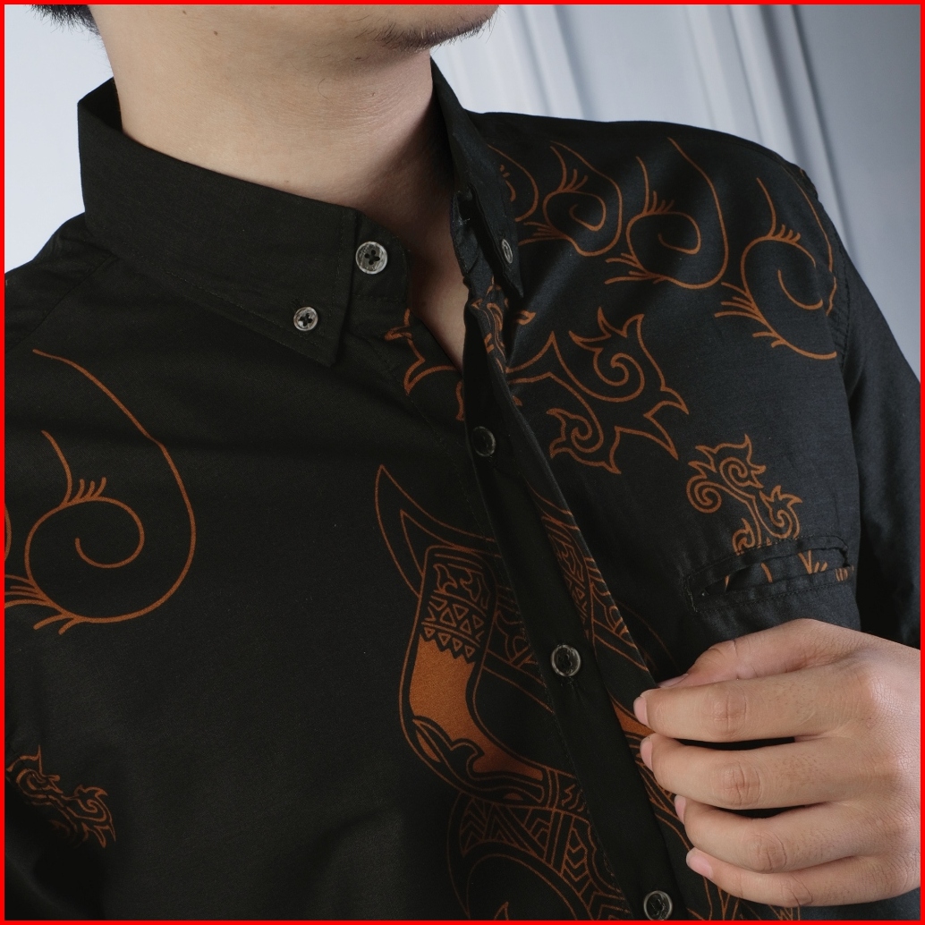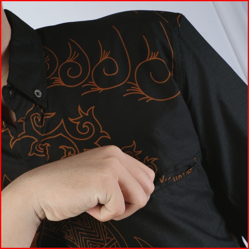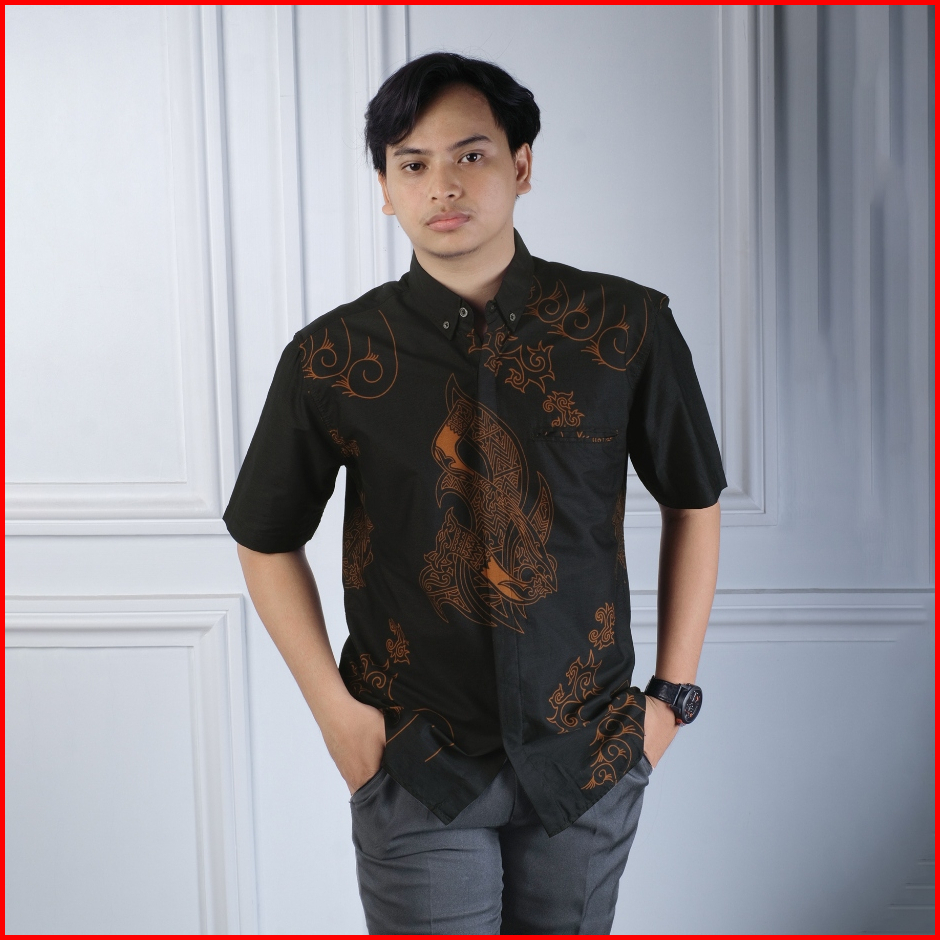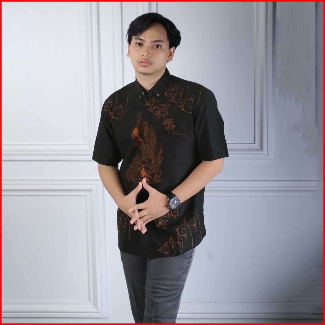 Dgm Kemeja Batik Pria Lengan Pendek Hitam Lapis Furing Premium Batik Puring Merak Hitam 2596