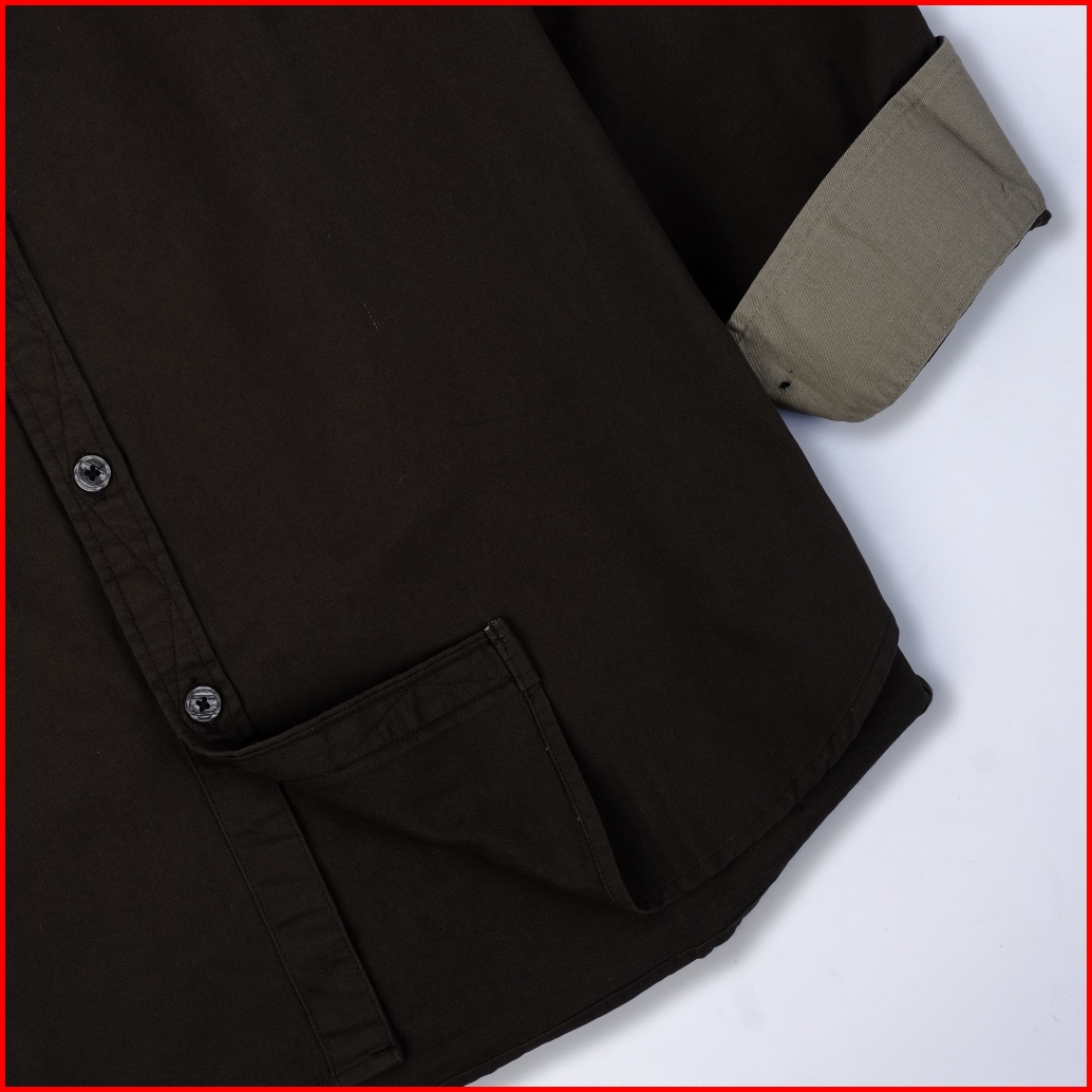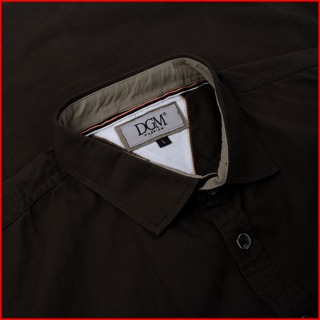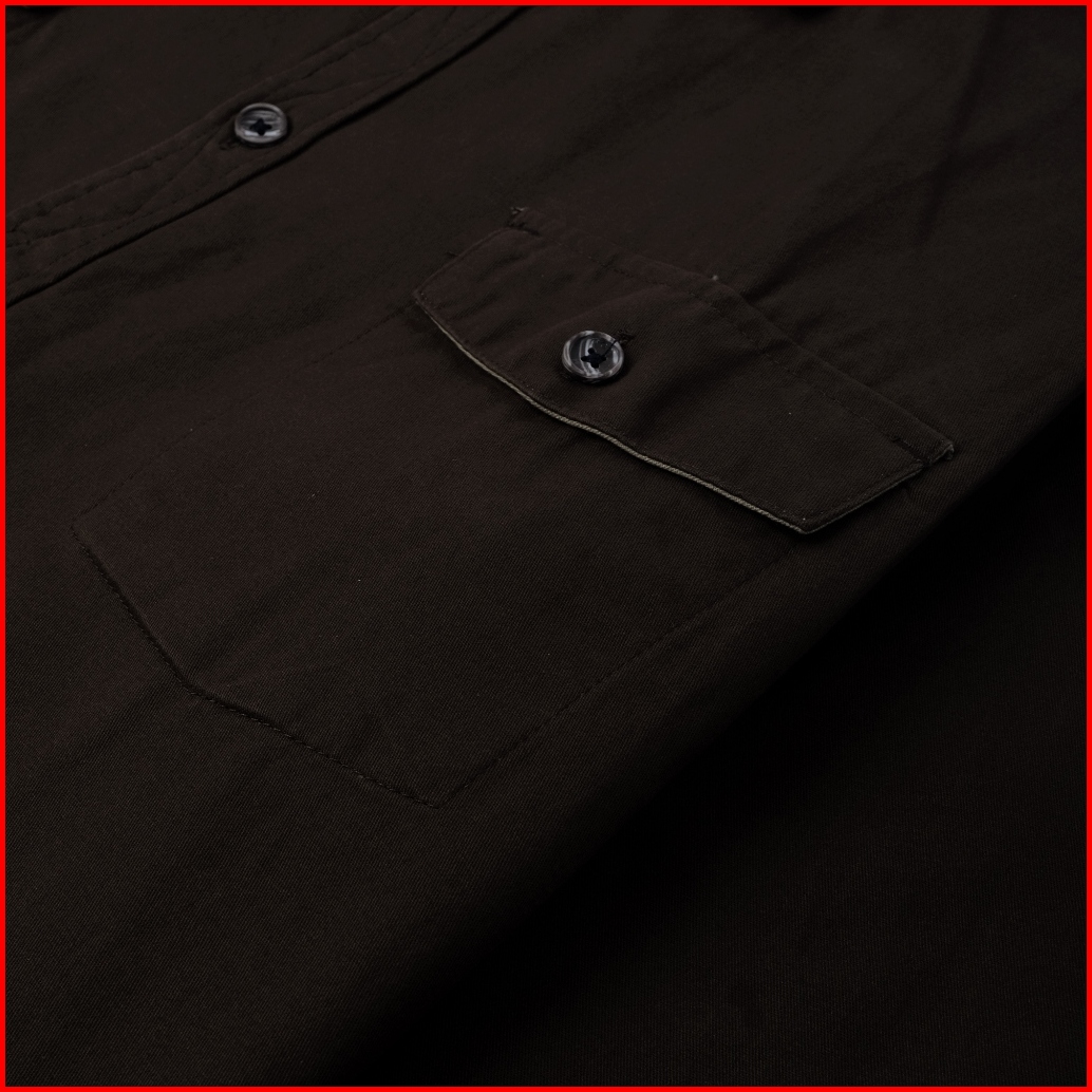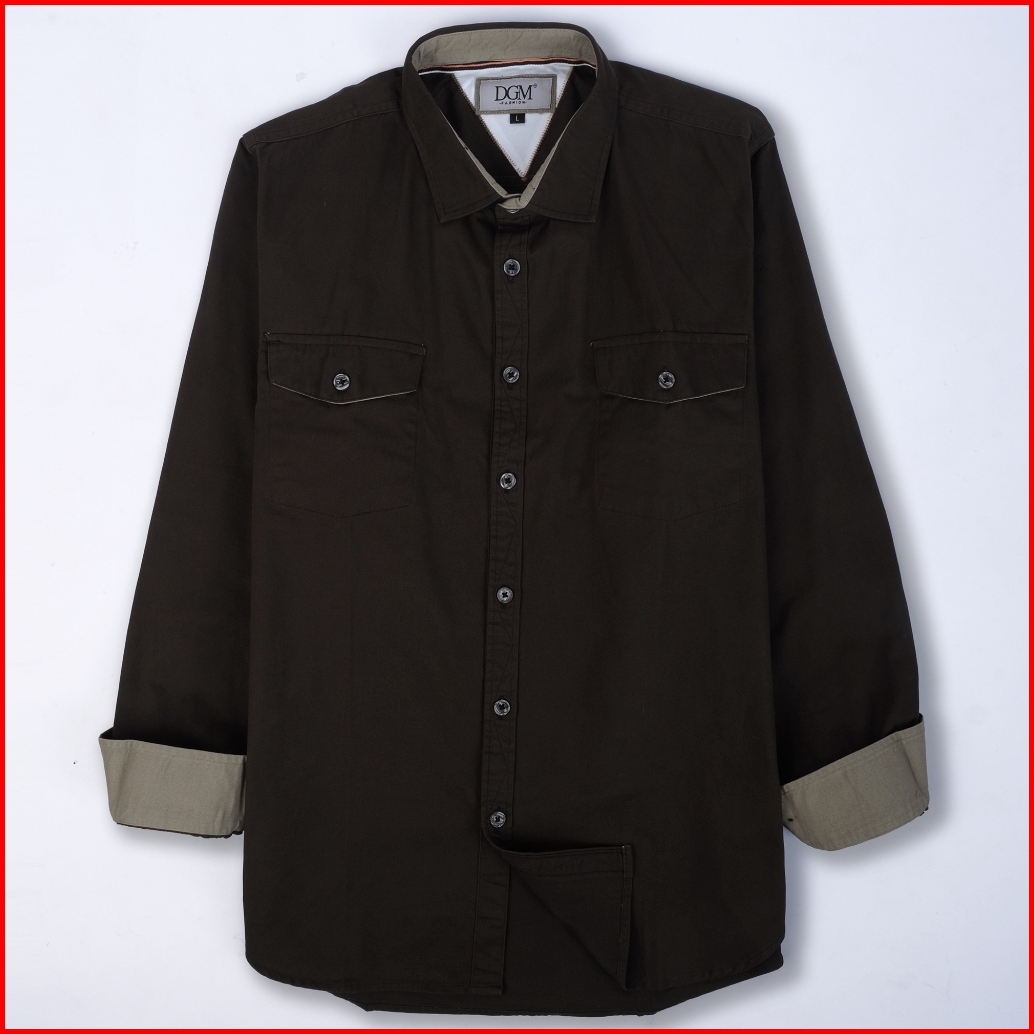 Dgm Workshirt Kemeja Kerja Katun Twill 30s Premium Lengan Panjang Double Pocket Kemeja Pria Dark Coklat Nathan 2548