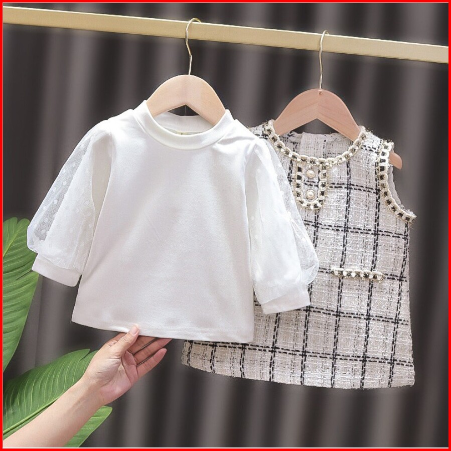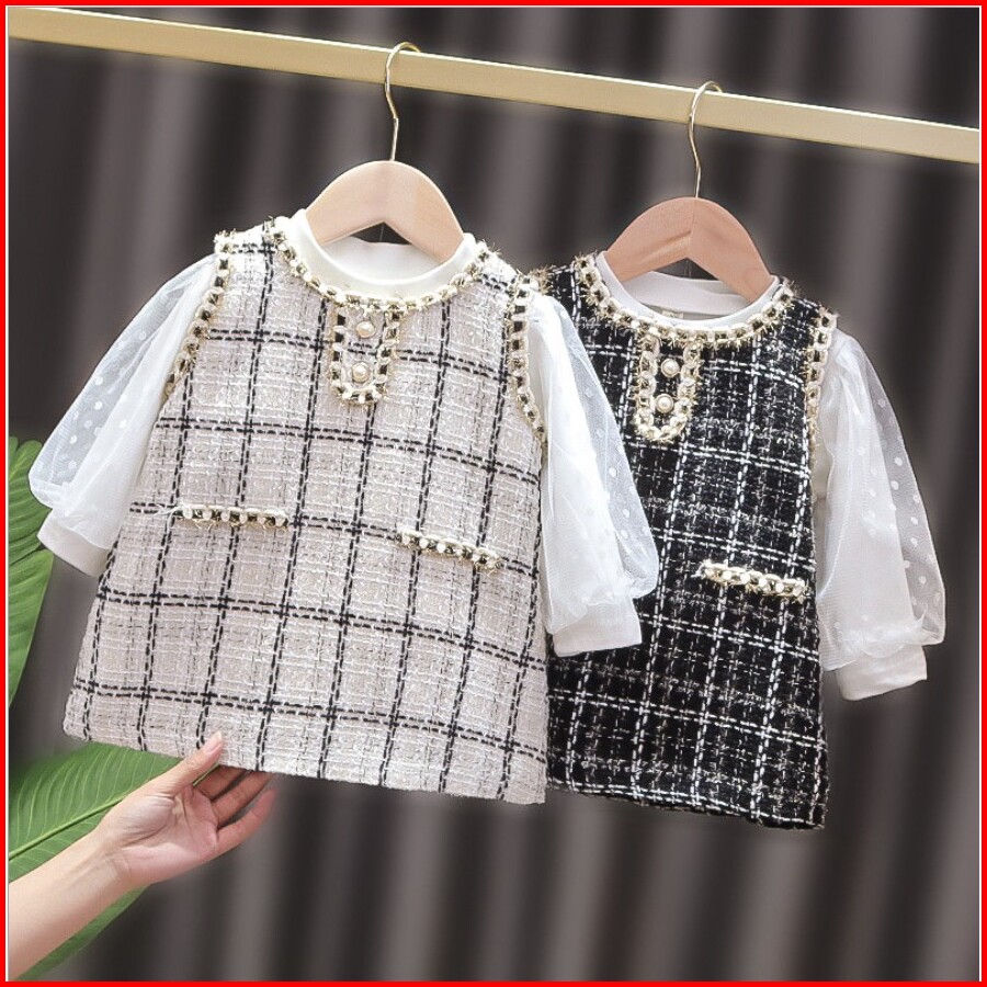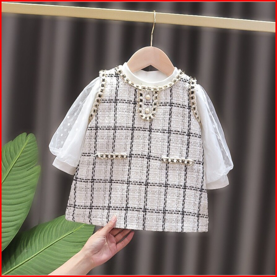 Dk30- Dress Bayi Baju Dress Anak Pakaian Bayi Anak Perempuan Lengan Motif Renda Kotak Kualitas Premium