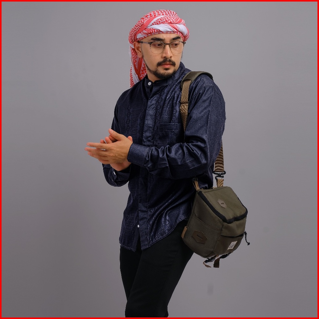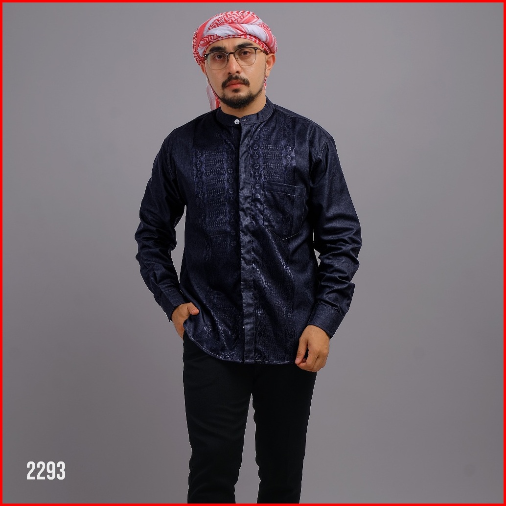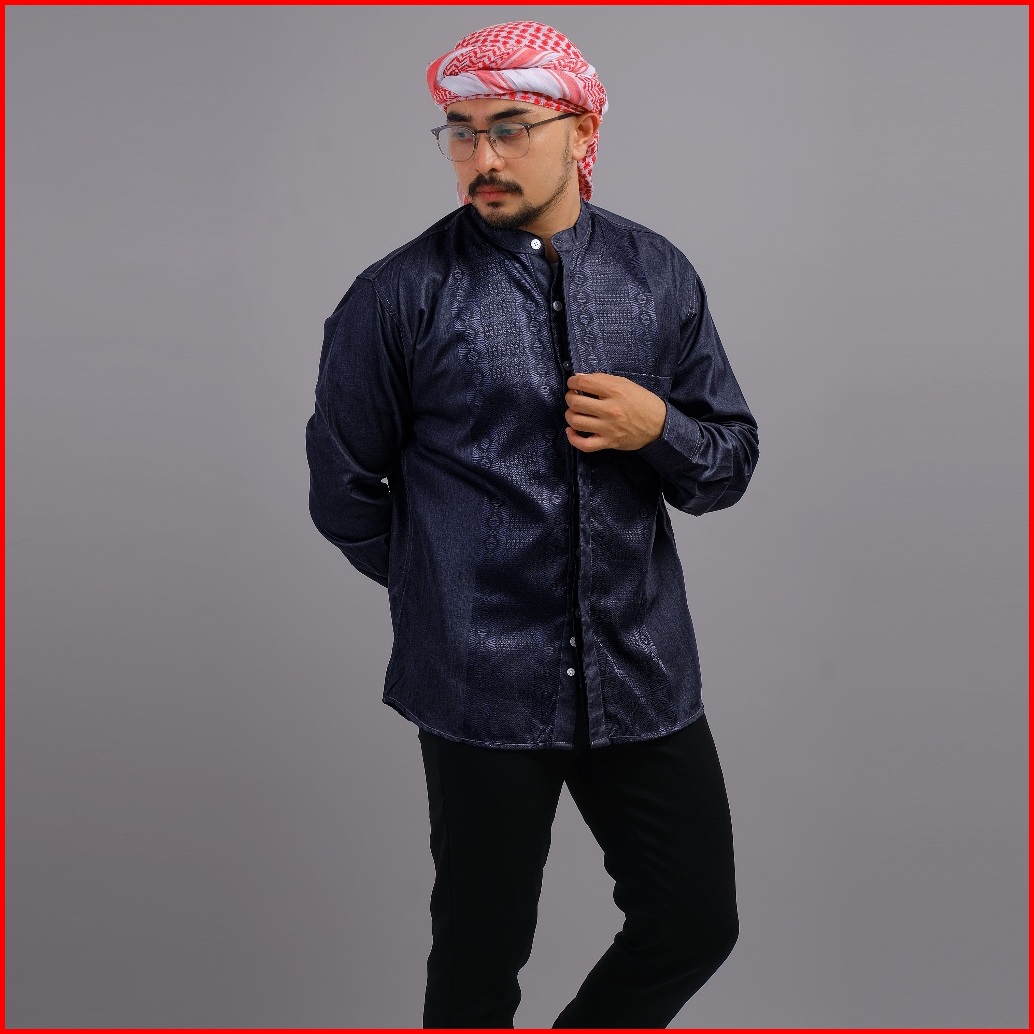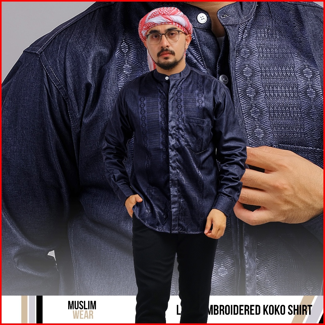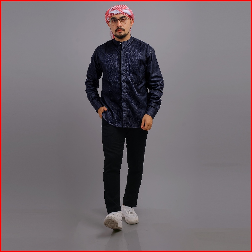 Dgm Kemeja Pria Koko Navy Bordir Lengan Panjang Motif Matahari 2293