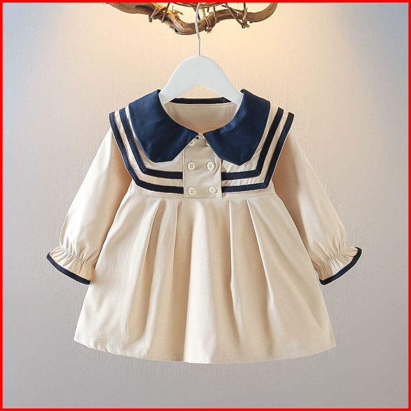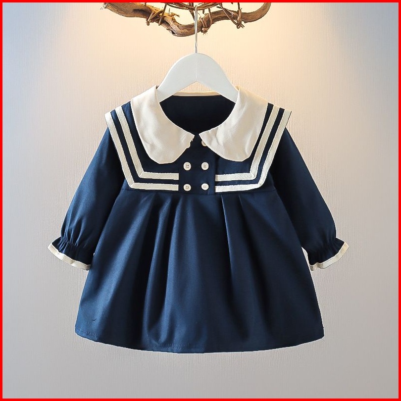 Dress Bayi-anak Perempuan Import Cream Navy