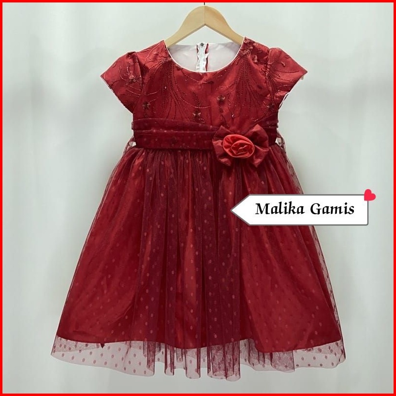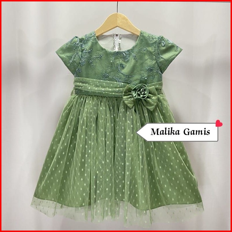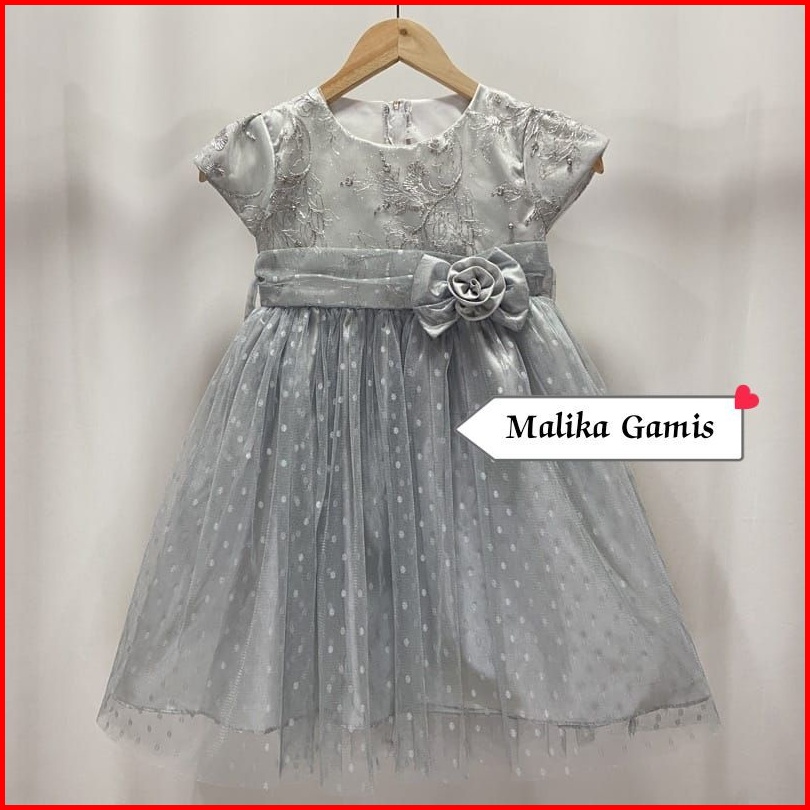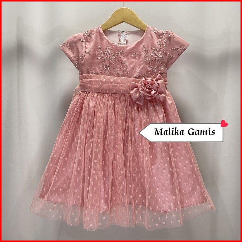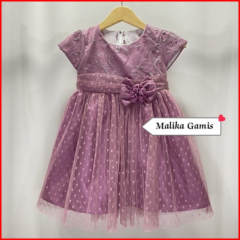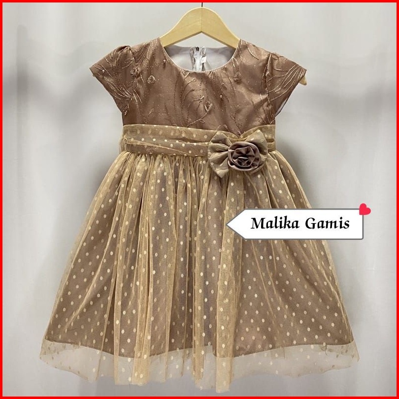Gaun Pesta Ulang Tahun Lebaran Natal Anak Perempuan Bayi Newborn Brukat Tile Polkadot - Dress Brukat Mutiara Mix Tile Do