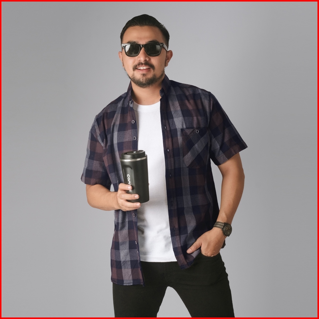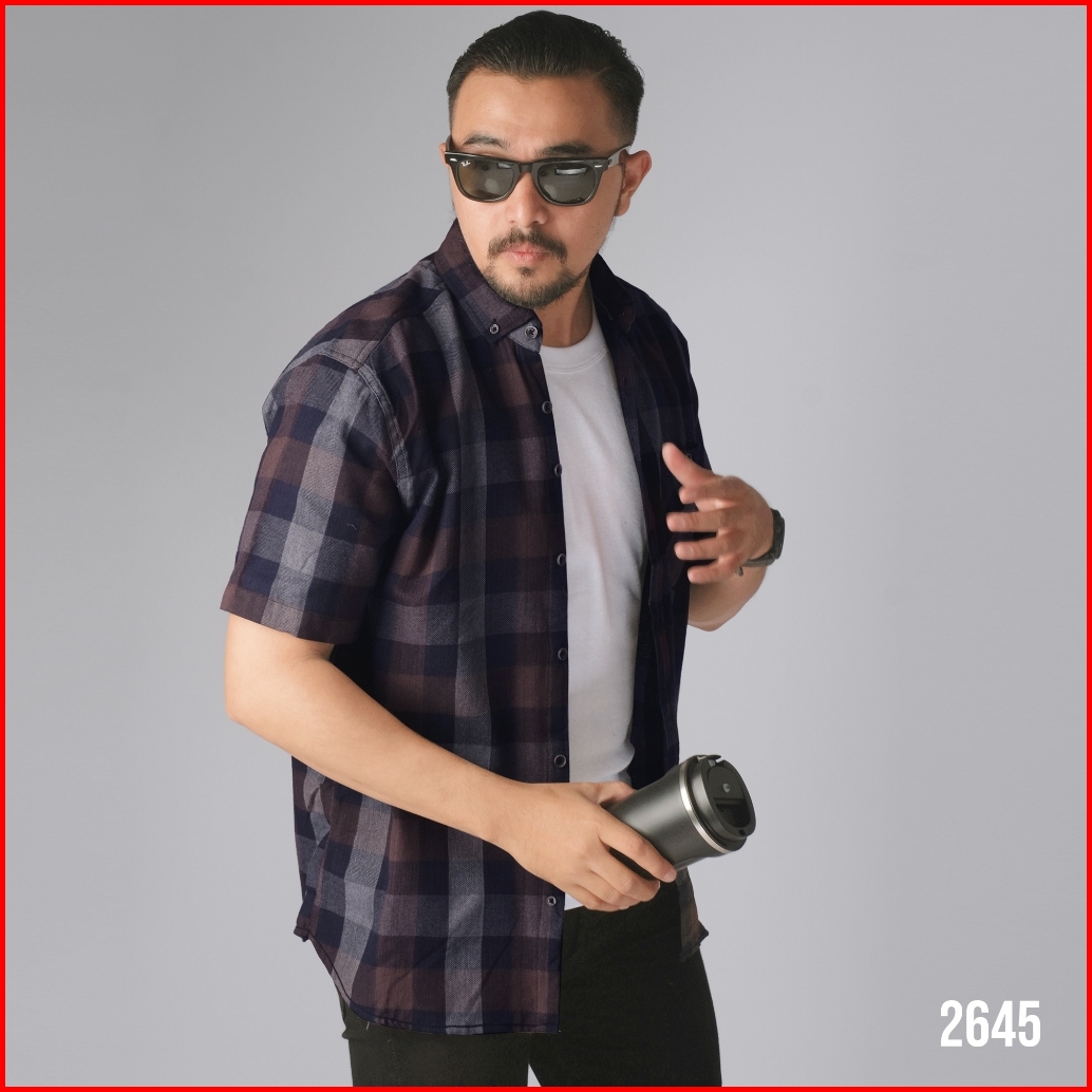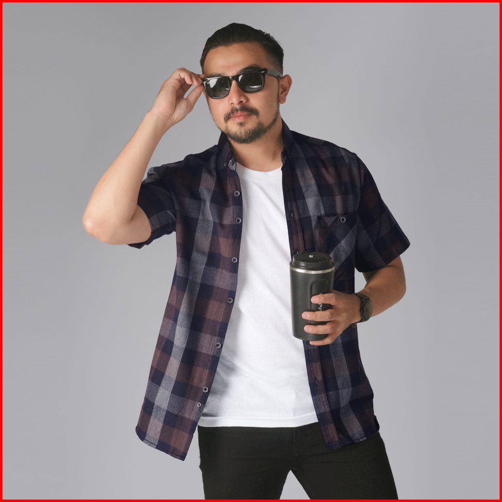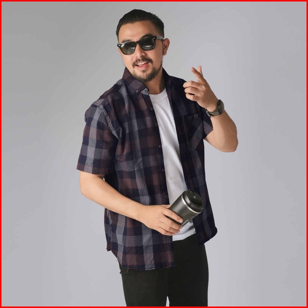 Dgm Kemeja Pria Flanel Pendek Premium Kotak Kotak Kemeja Flanel Coklat Navy 2645