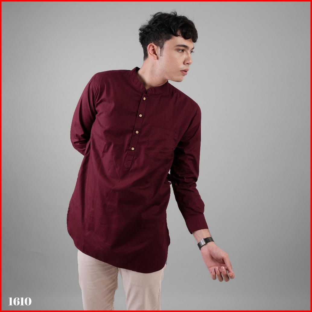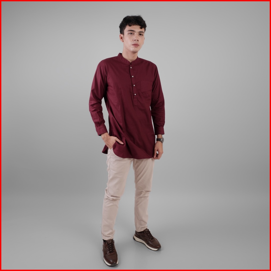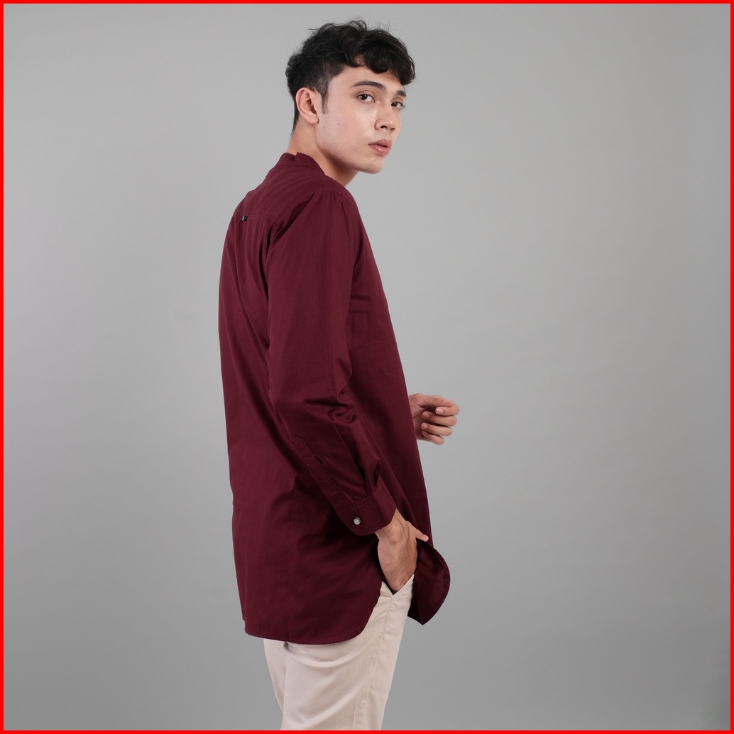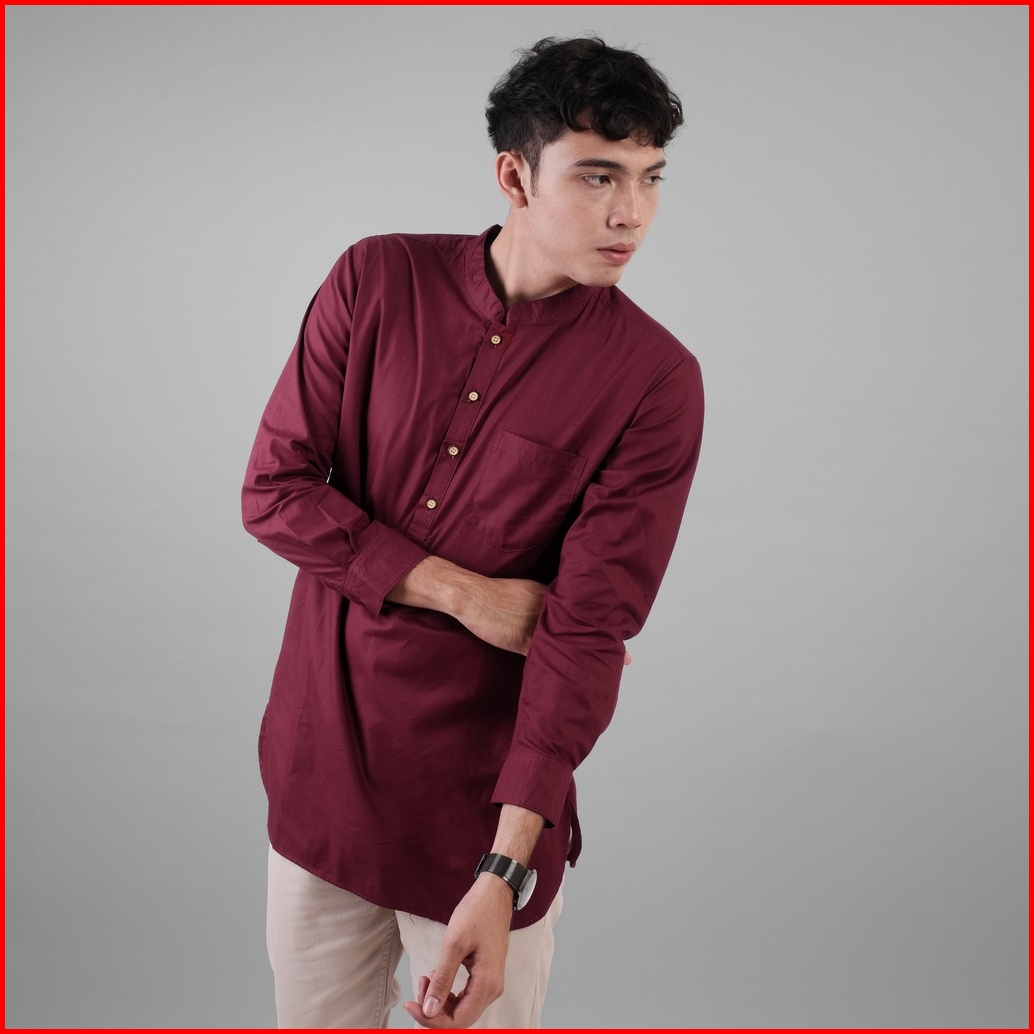 Dgm Baju Koko Pria Polos Katun Weave Premium Maroon Lengan Panjang Koko Kurta 1610
